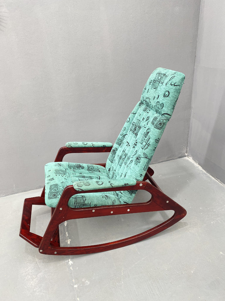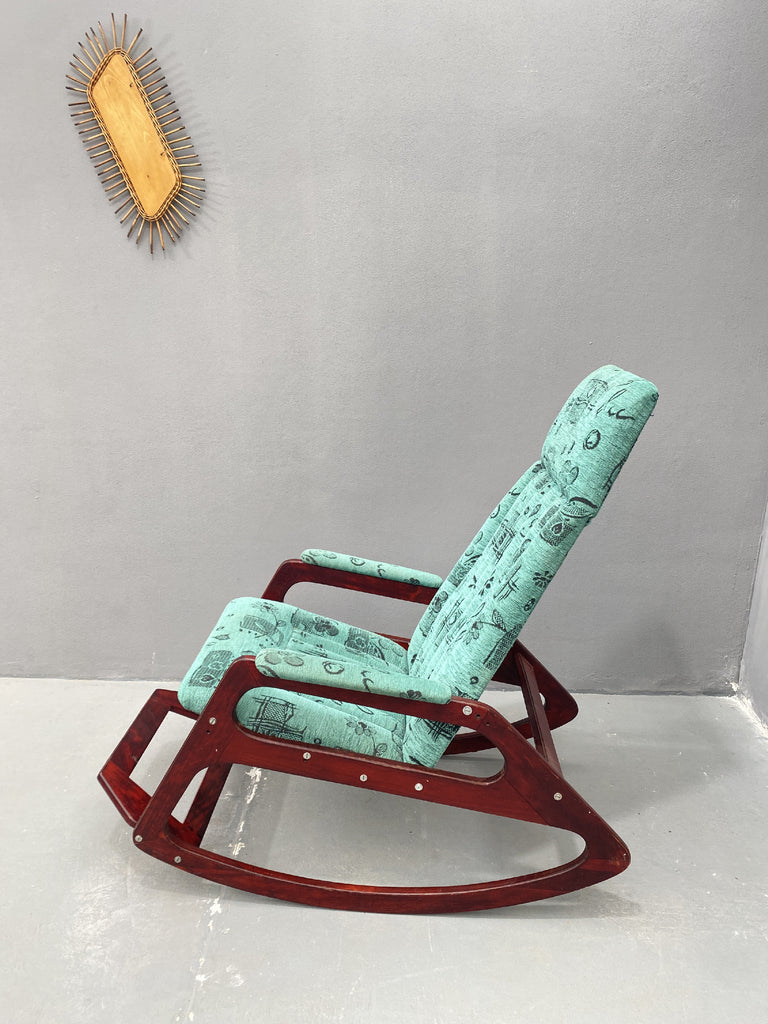With its ergonomic seat (53 × 48 cm) and tall, supportive backrest, this rocking chair offers both comfort and character. Whether placed in a retro-inspired setting or used as a standout accent in a modern interior, it adds charm, history, and a distinctive design sensibility.