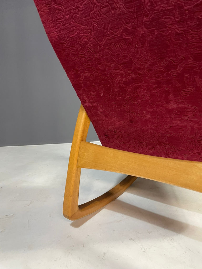 This elegant bentwood rocking chair was made in the 1960s by TON, the renowned Czechoslovak furniture company that succeeded Thonet after 1946. A perfect blend of graceful curves and functional comfort, the chair is a beautiful example of mid-century craftsmanship from Central Europe.