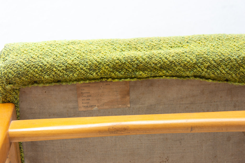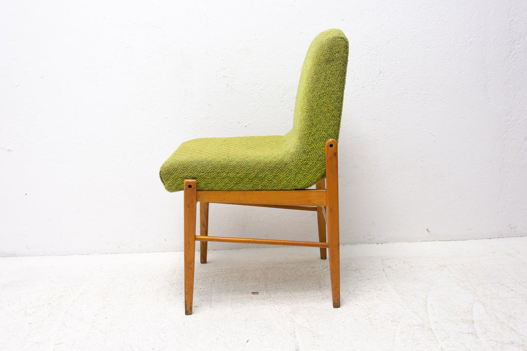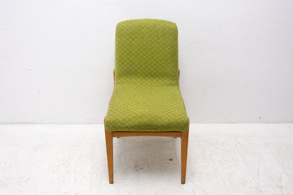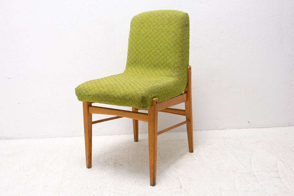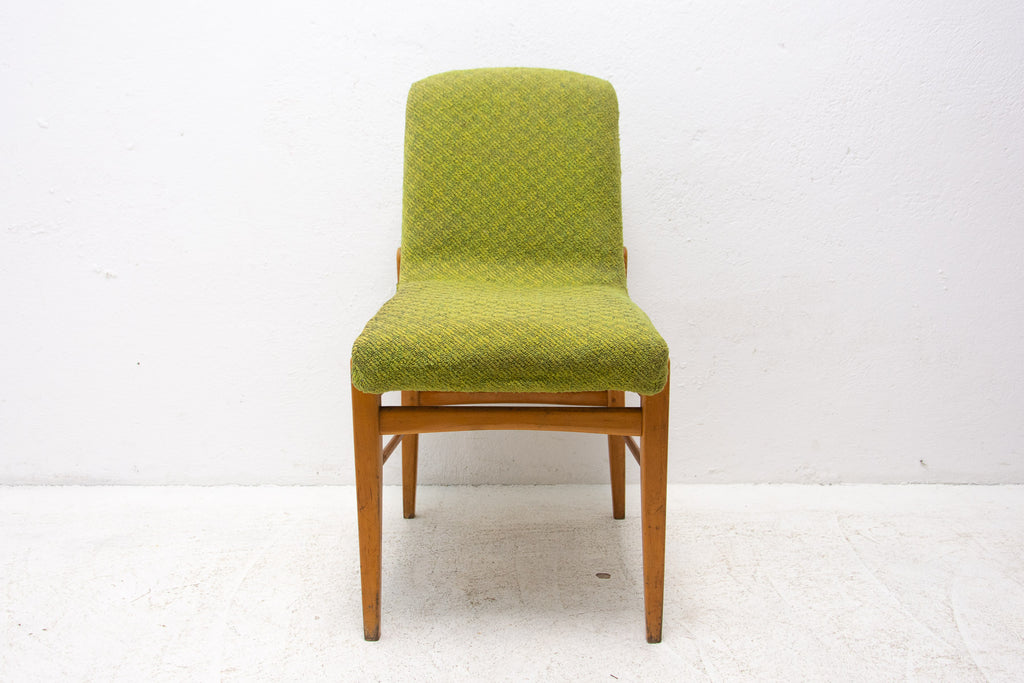 Set of four upholstered dining chairs by Miroslav Navrátil, made in the former Czechoslovakia in the 1960s. The chairs are constructed of beech wood. Very interesting shaping. The chairs are structurally in good condition, the upholstery shows signs of age and using(abrasions etc). Price is for the set of 4.