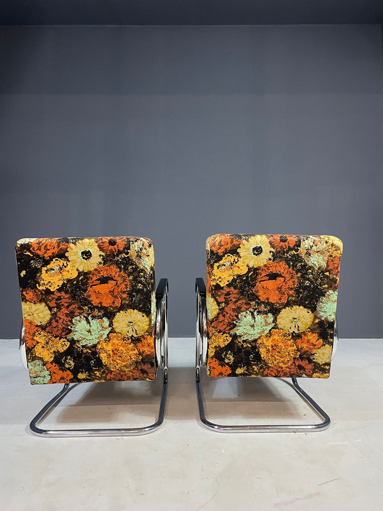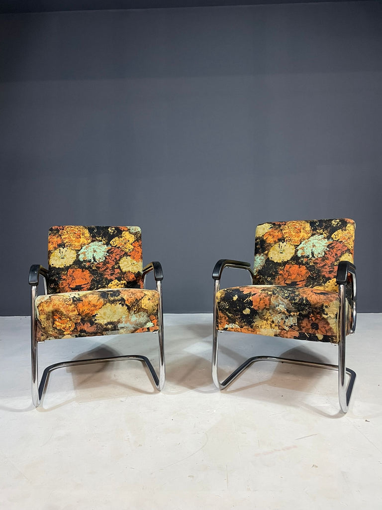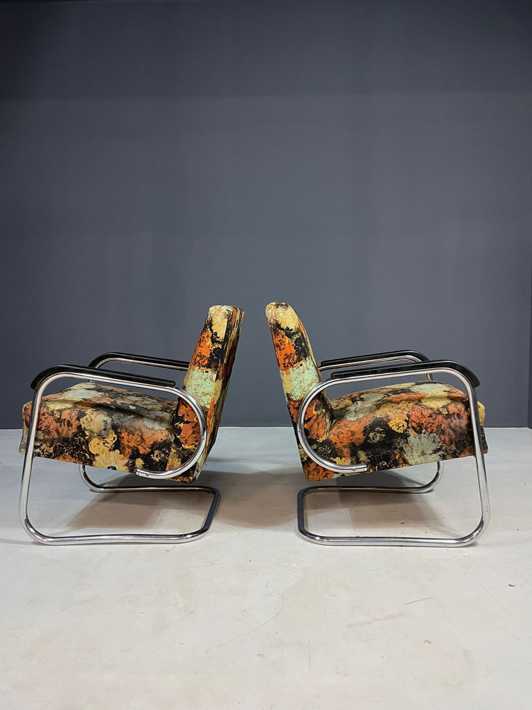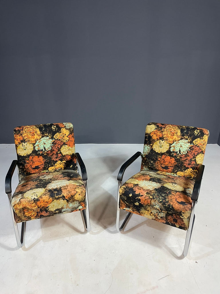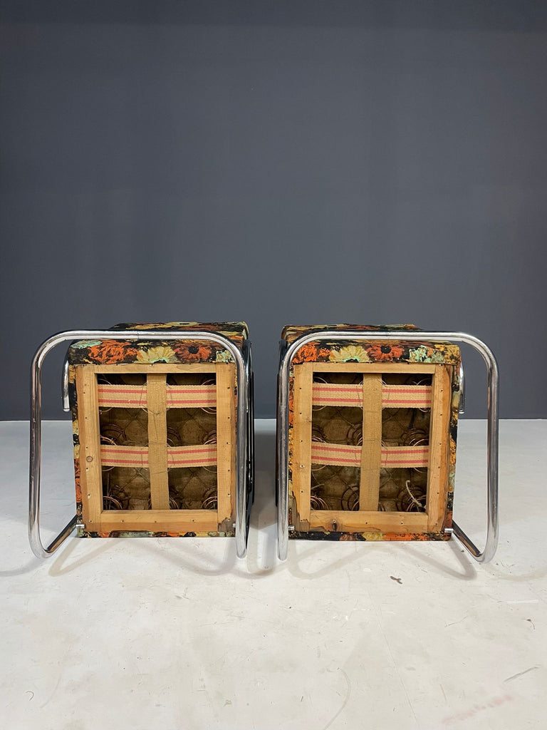 Pair of Bauhaus Style Functionalist Chromed Armchairs, Eastern Europe, 1950s