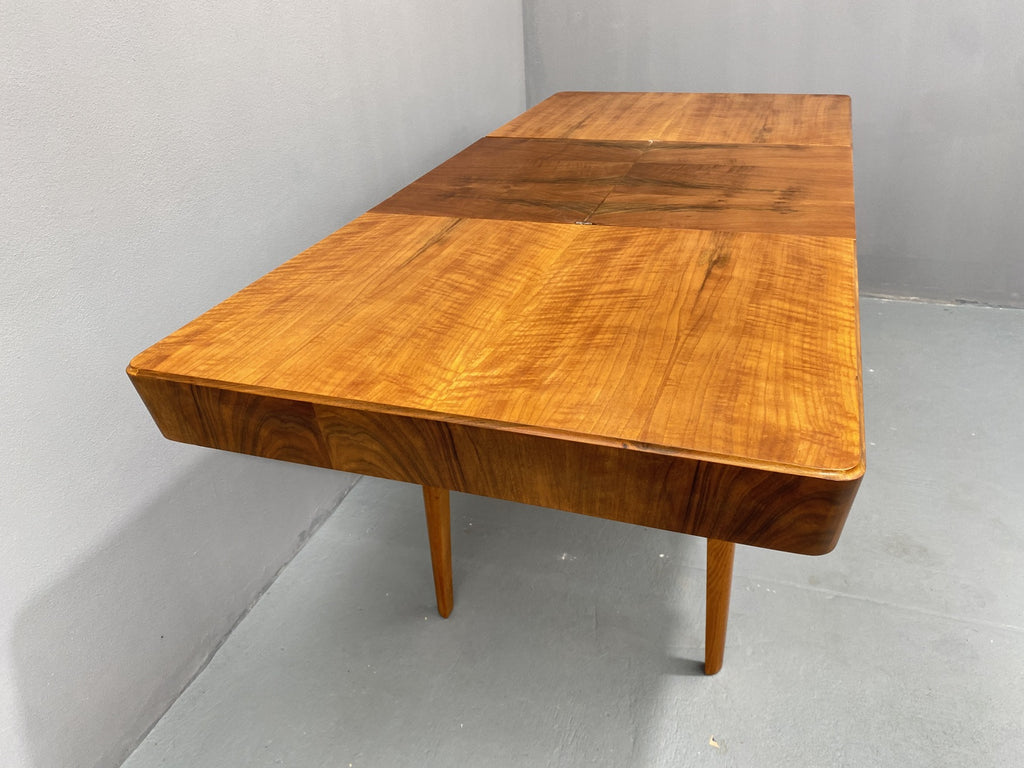 Walnut adjustable dining table by Setona, 1950s, Czechoslovakia