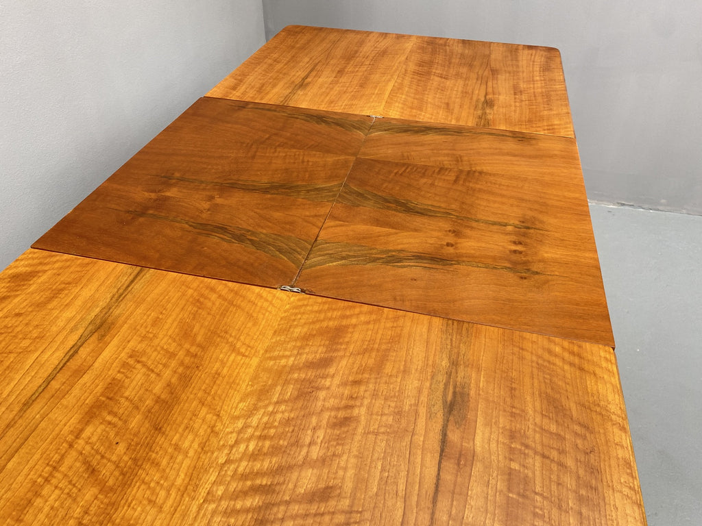 Recently fully renovated and repainted, it is in excellent condition. The rich walnut finish and subtle Art Deco influence give it an elegant appearance, while the sturdy construction ensures long-lasting use. A rare piece that will bring character and refinement to any dining room.