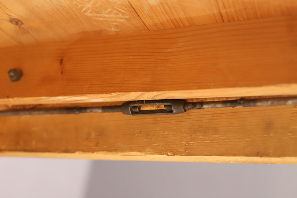 Large gymnastics bench from the 1950s. It can be used as a dining or central table in your room. This old gymnastics bench was made in the former Czechoslovakia and is made of leather, wood and iron.