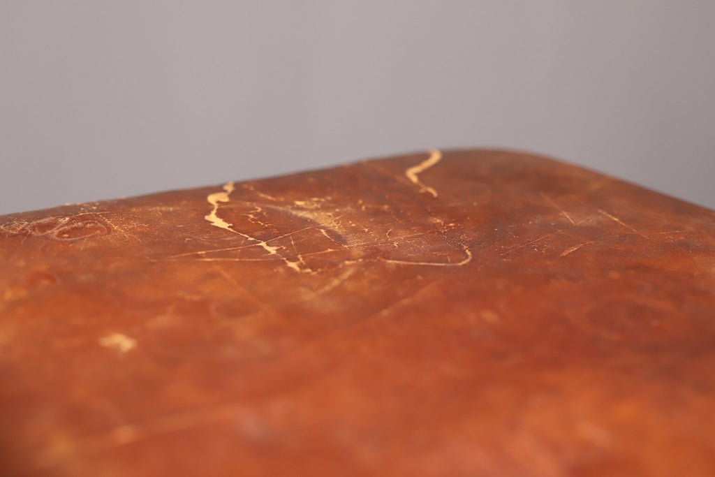 Has a very nice patina. Beautiful leather (also around the legs) and blue extendable legs. The bench is height adjustable. The extendable legs can also be removed. In good condition. No cracks, just patina.
