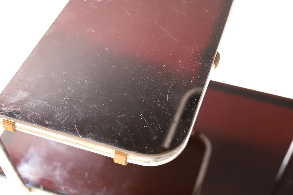 The chrome exhibits minor signs of patina, which do not detract from its overall elegant look. With its unique aesthetic and functionality, this étagère is sure to become a striking feature in your interior.