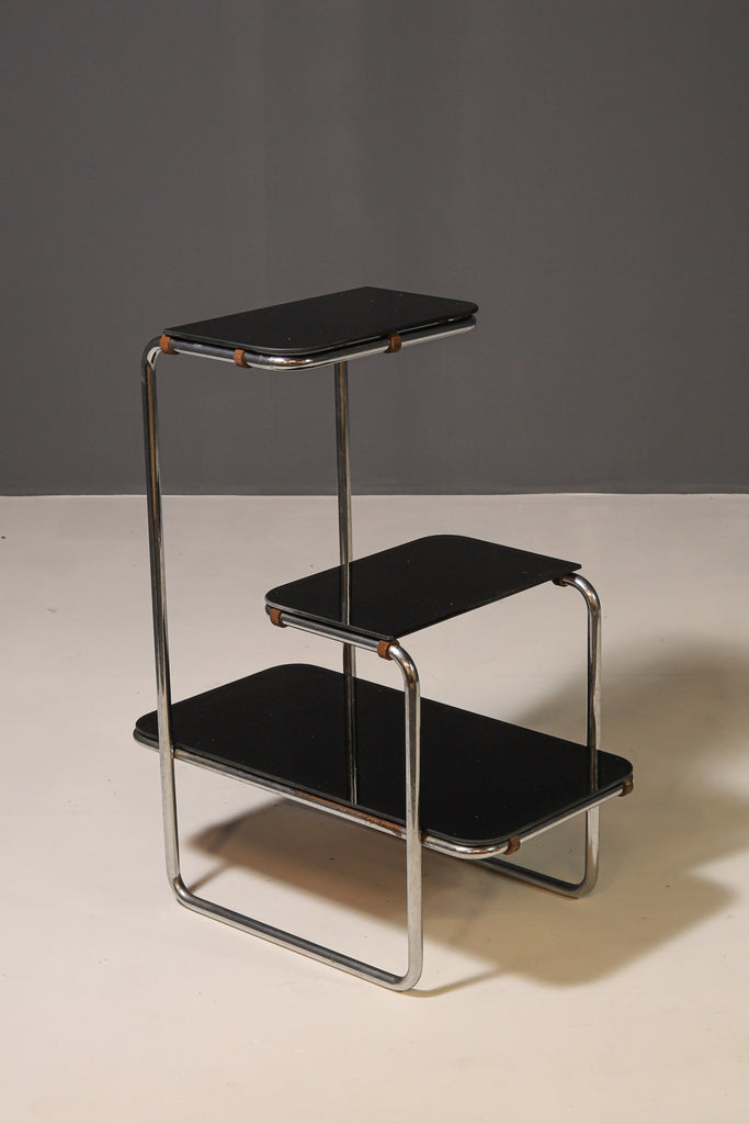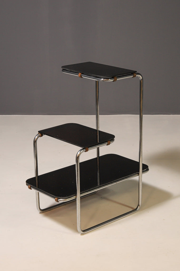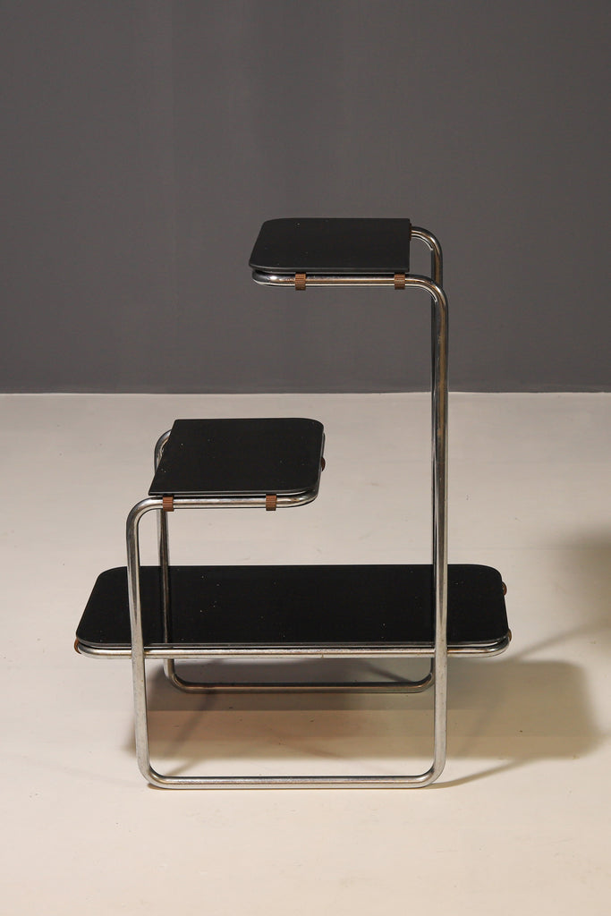 This elegant functionalist étagère was originally designed by Anton Lorenz and produced in the 1930s–1940s by the renowned manufacturer Robert Slezák, later known as the national company Kovona. It is a stunning piece of furniture that perfectly combines practicality with the timeless design characteristic of the functionalist period.