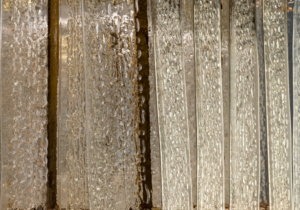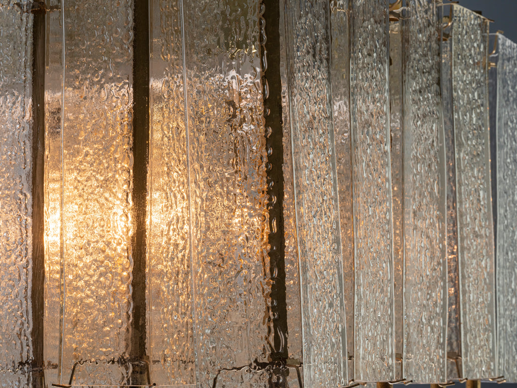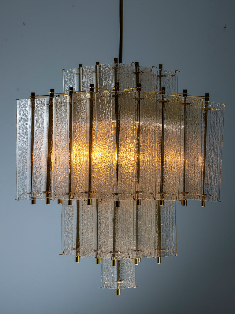 Chandelier in Brass and Structured Ice Glass, 1950s, Austria
