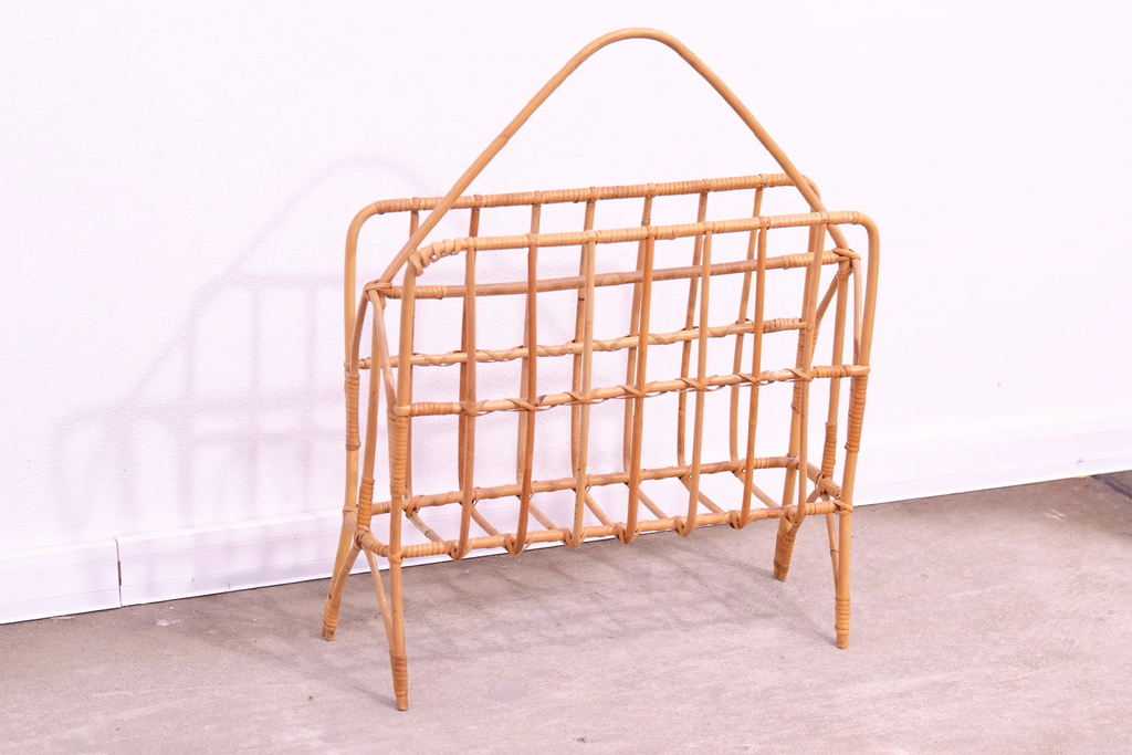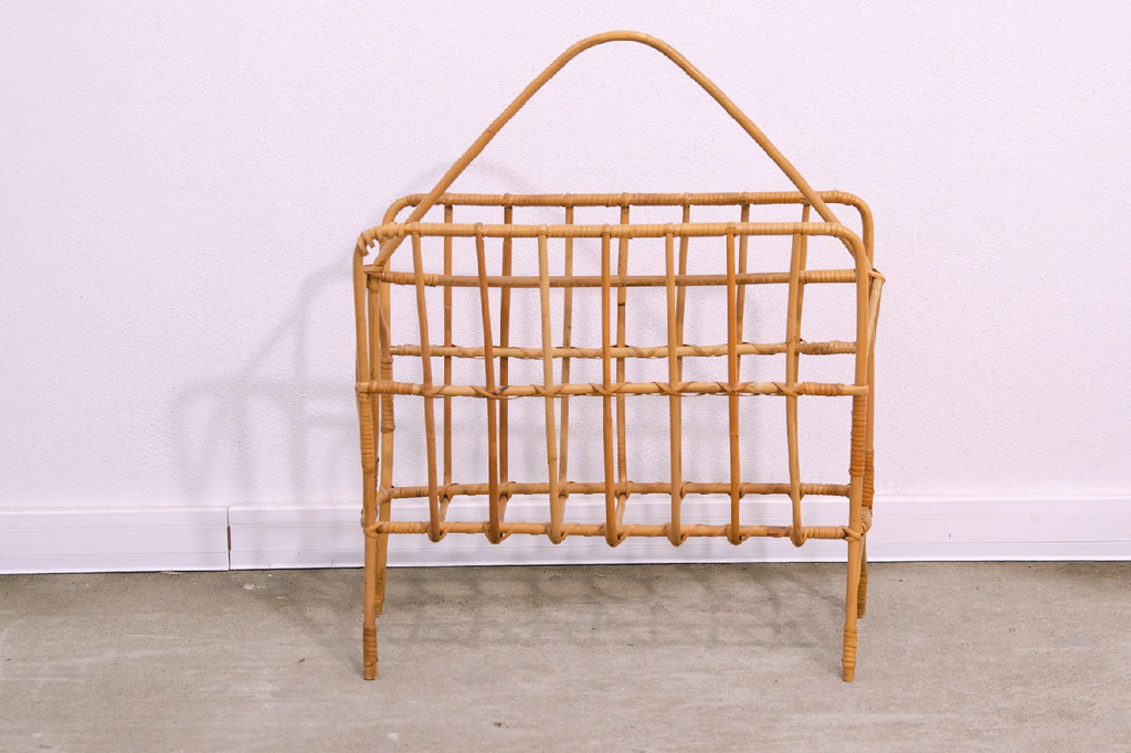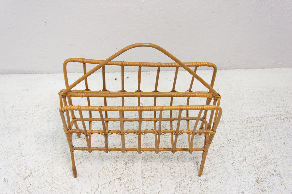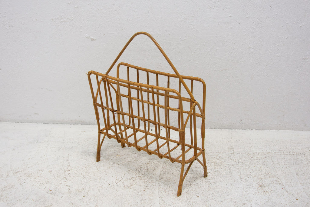 Mid century wicker magazine rack, Czechoslovakia, 1960s