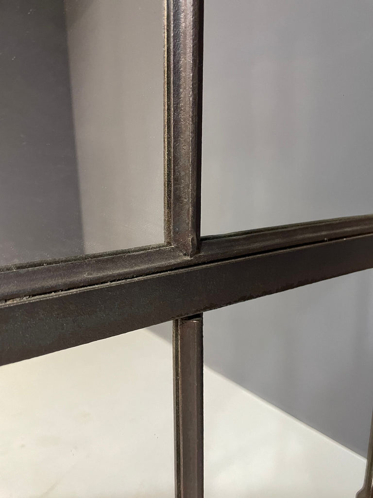 The lacquered iron frame displays an authentic industrial look, enhanced by its natural patina.