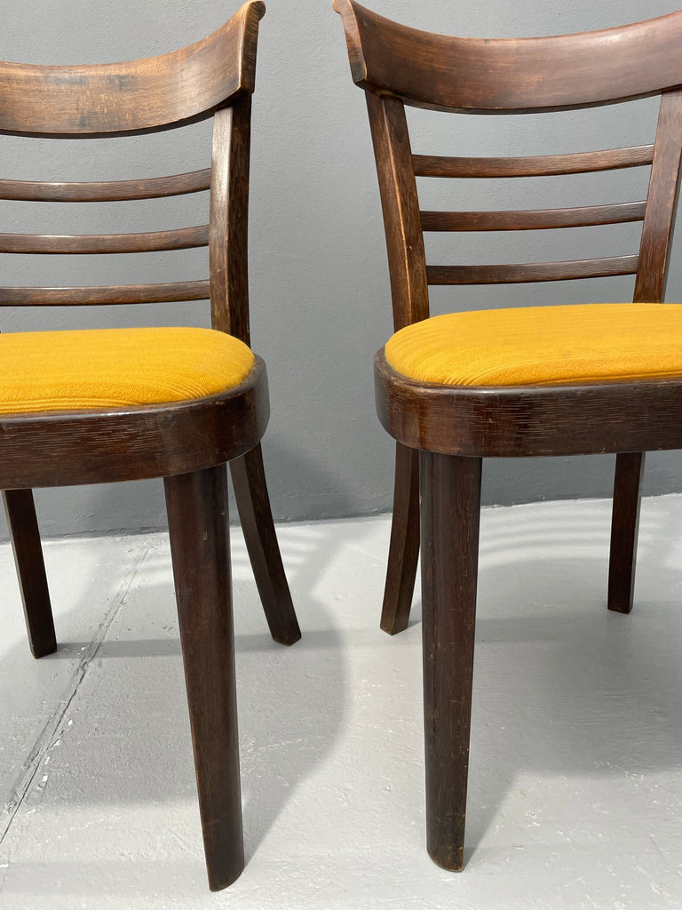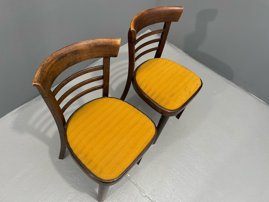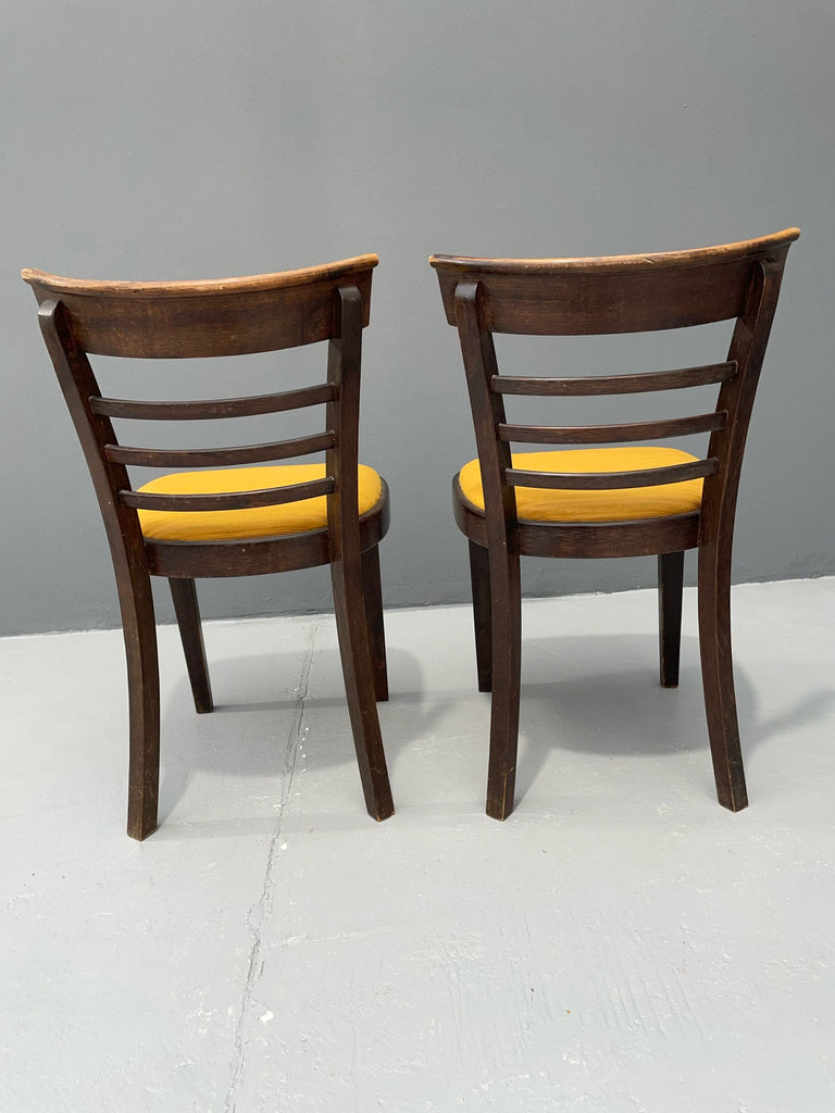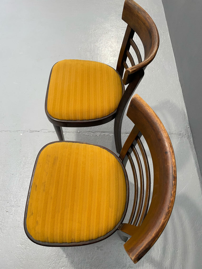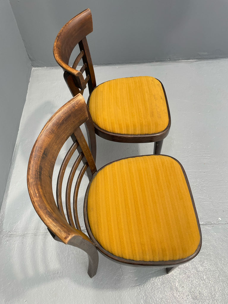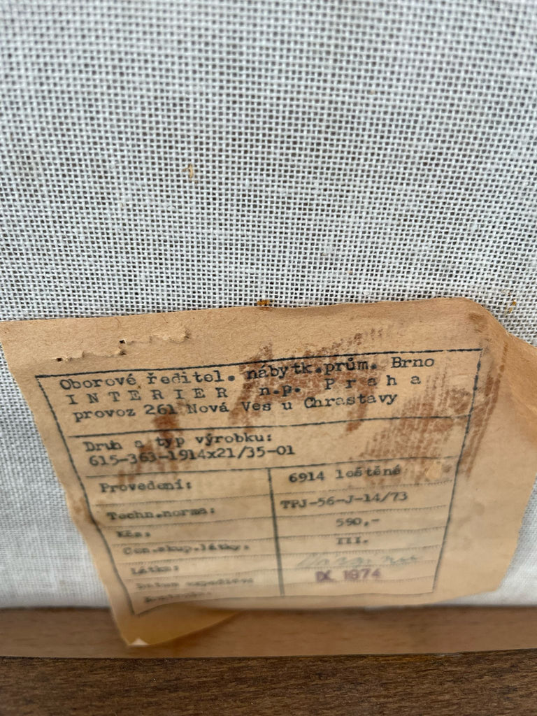 We offer a pair of dining chairs manufactured in 1974 at the INTERIER national enterprise, Nová Ves u Chrastavy plant, under the Brno Furniture Industry Directorate. Produced according to the Czechoslovak TPJ technical standards, these chairs were typical for both residential and institutional interiors.