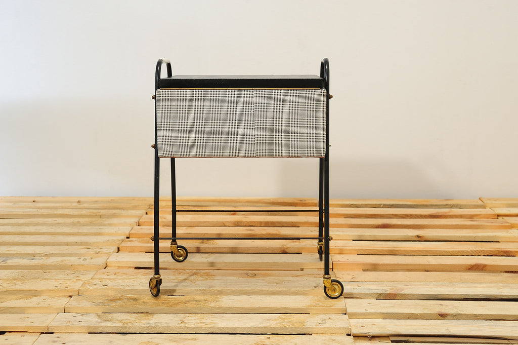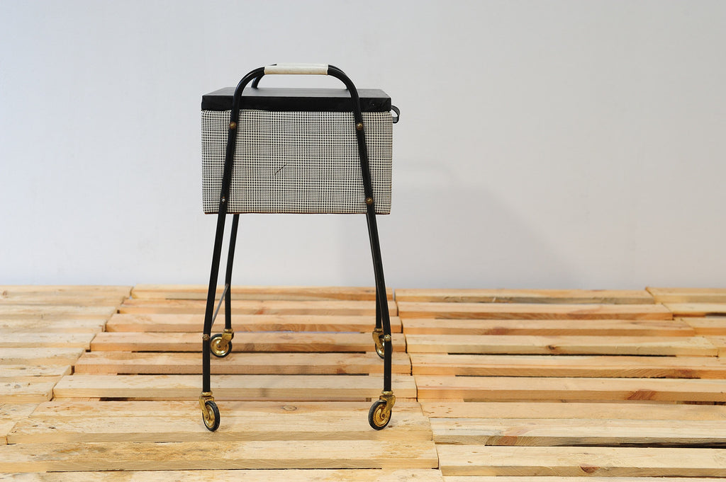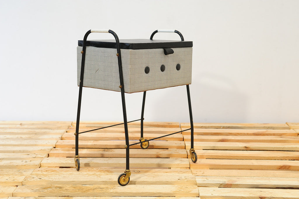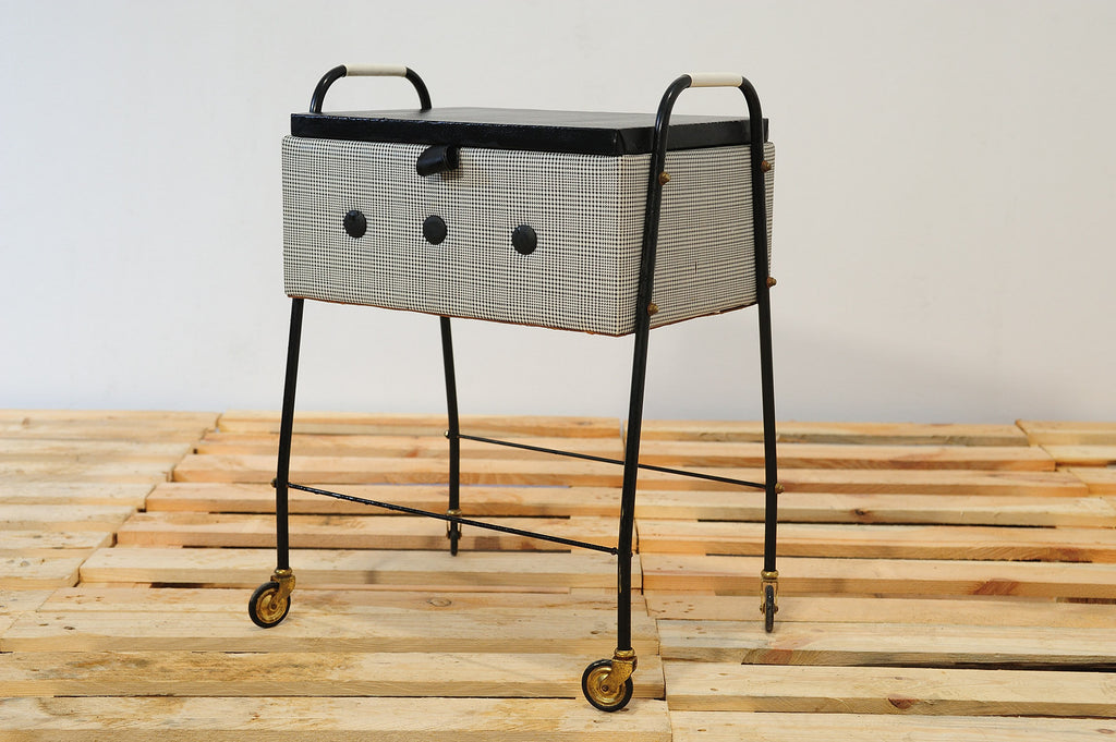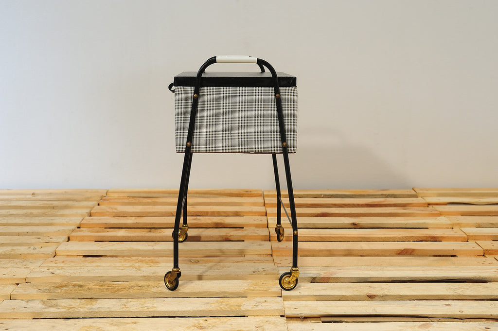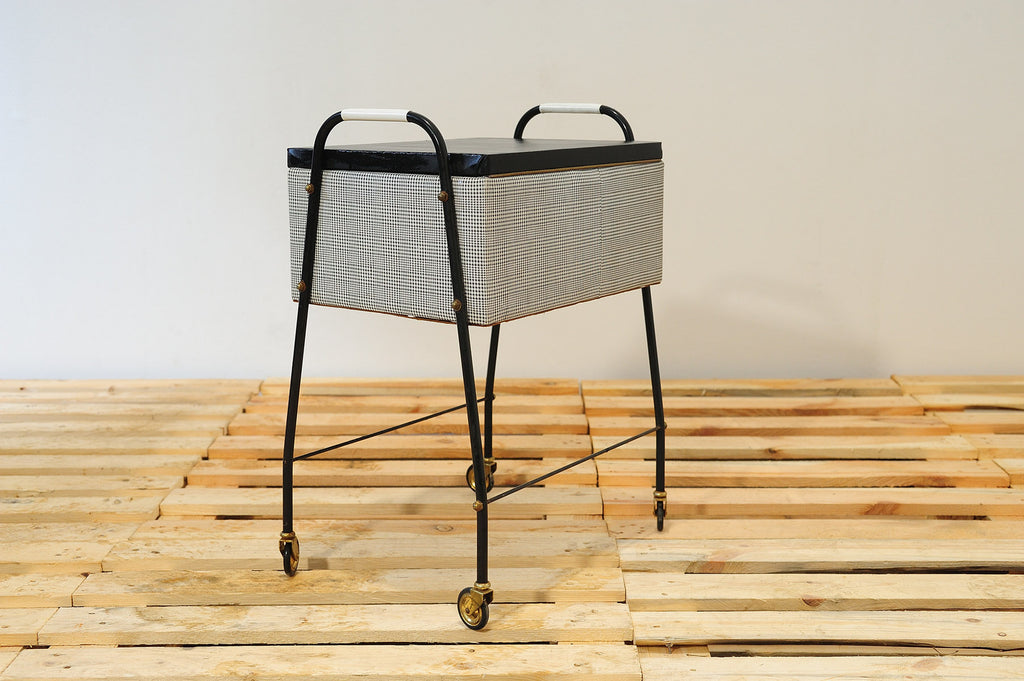 This vintage sewing table on wheels was made in Germany in the 1970s.