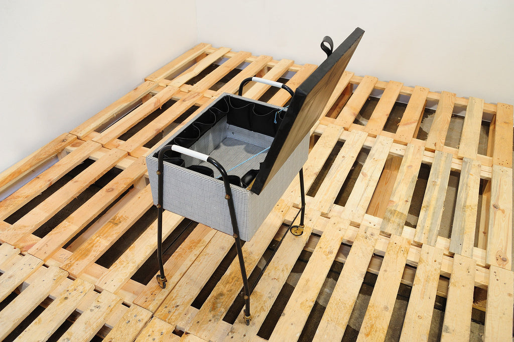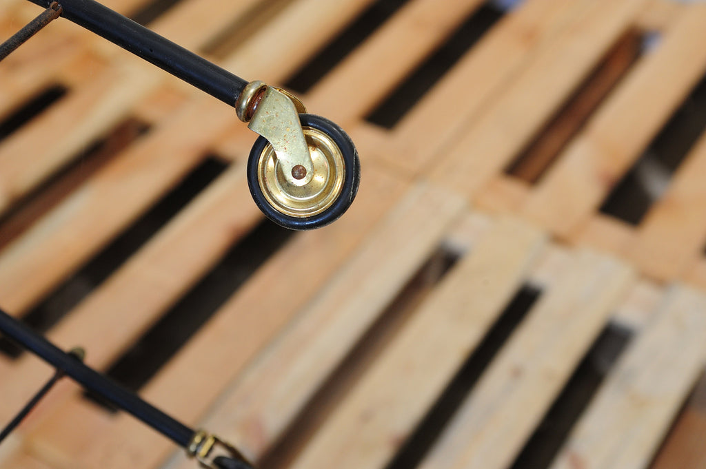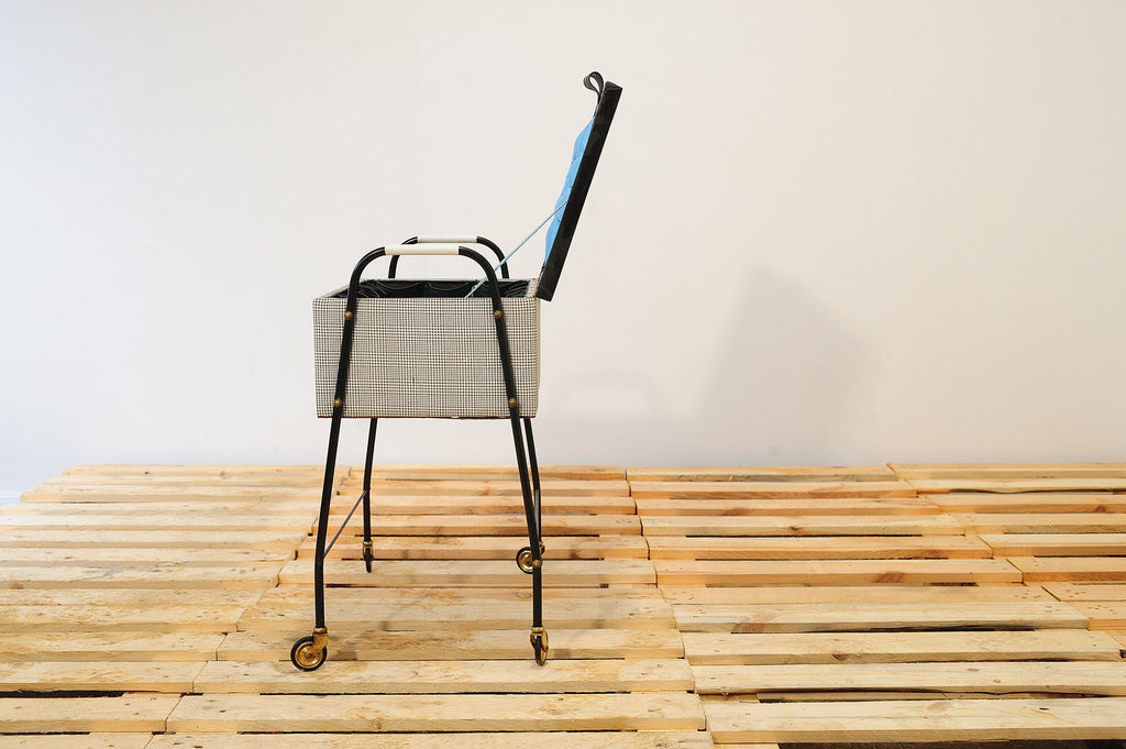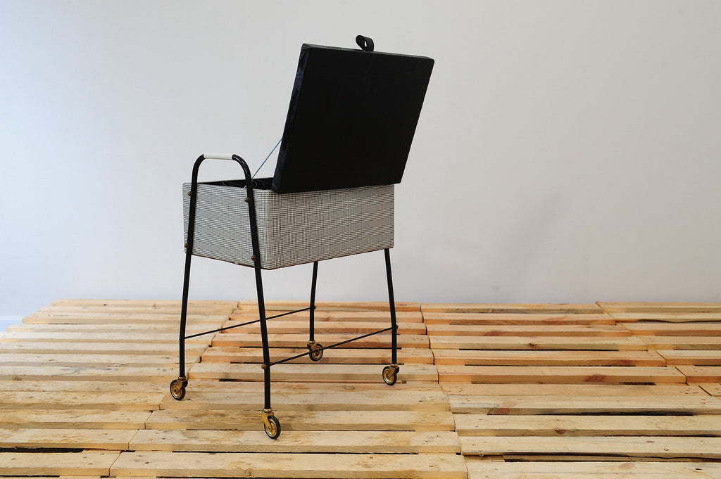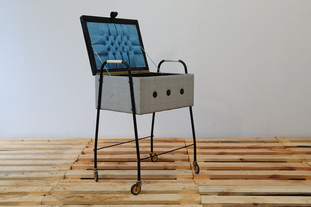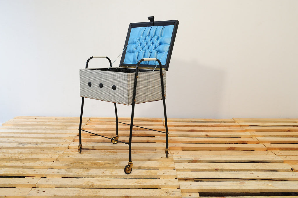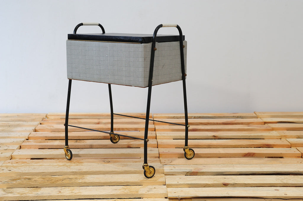 This vintage sewing table on wheels was made in Germany in the 1970s.