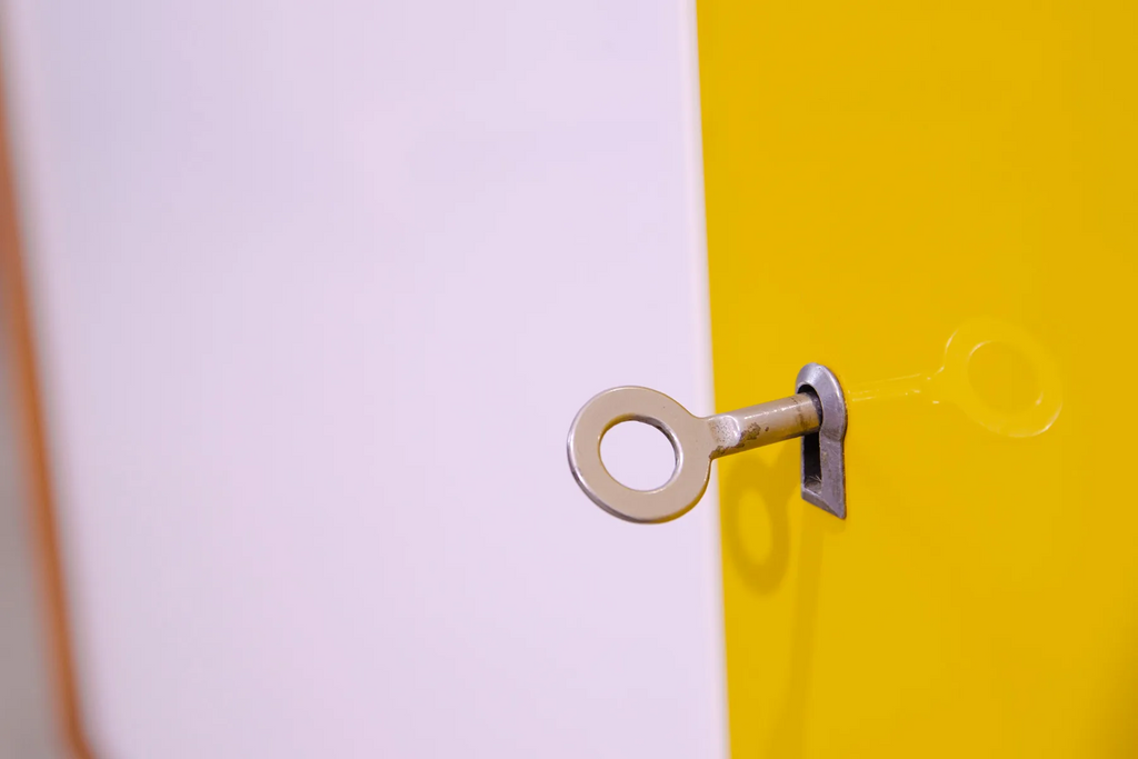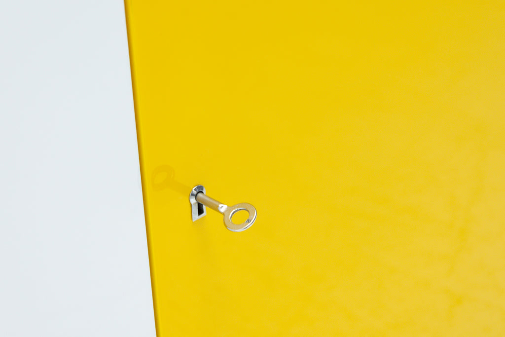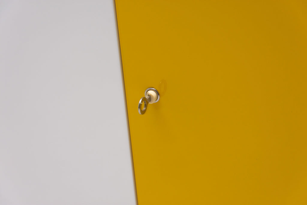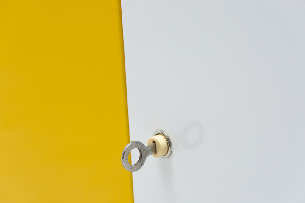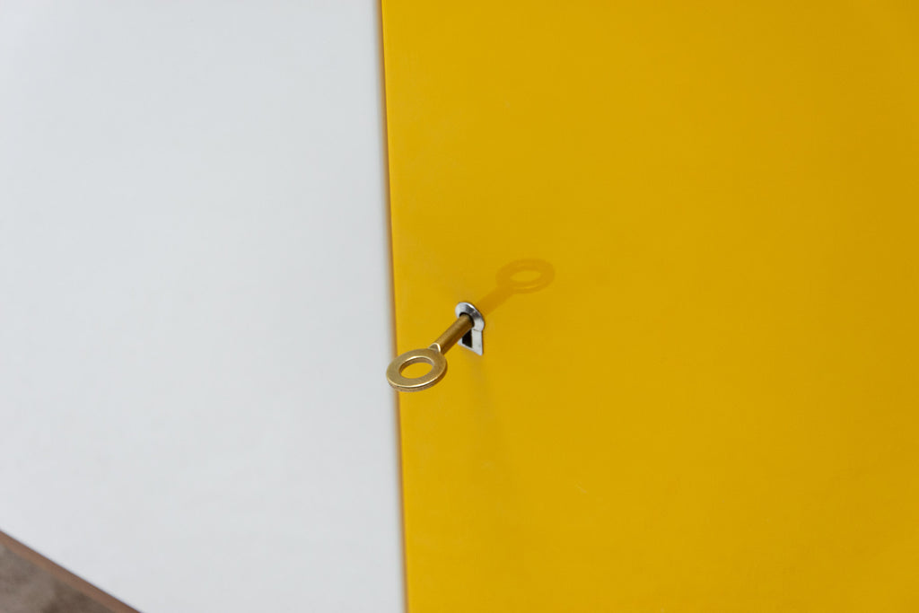A mid-century sideboard from the iconic Universal series (U-450), produced in former Czechoslovakia in the 1960s. Recognized for its pastel colors, sloping legs, and minimalist lines, the U-450 range became a symbol of the “Brussels style” that followed the success of the 1958 Brussels Expo.