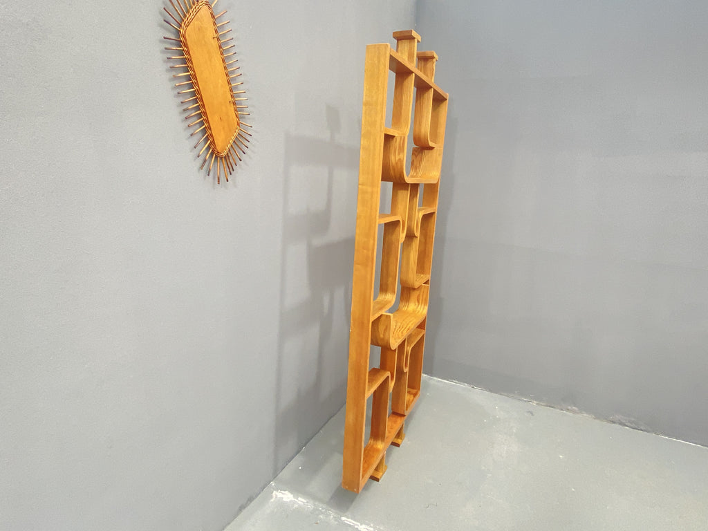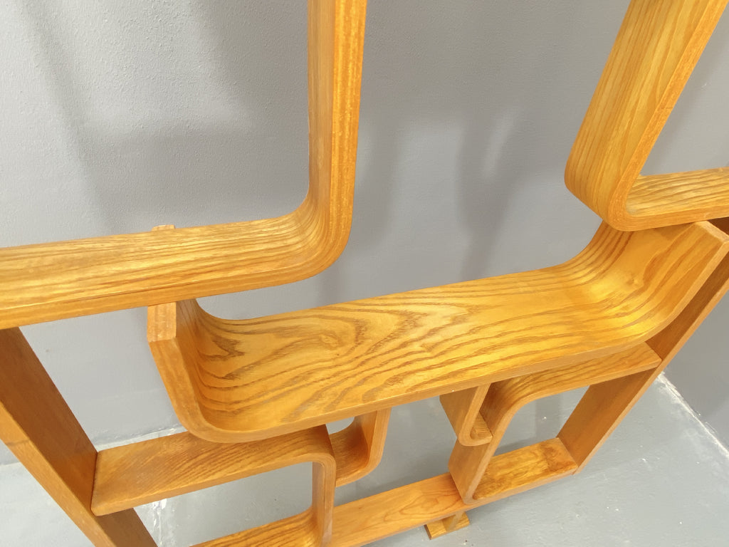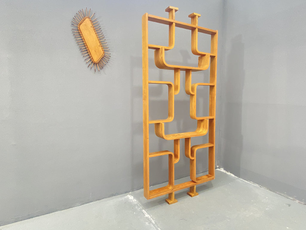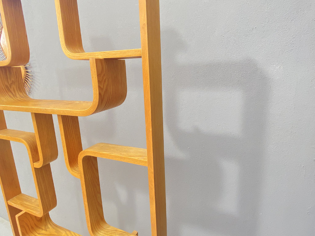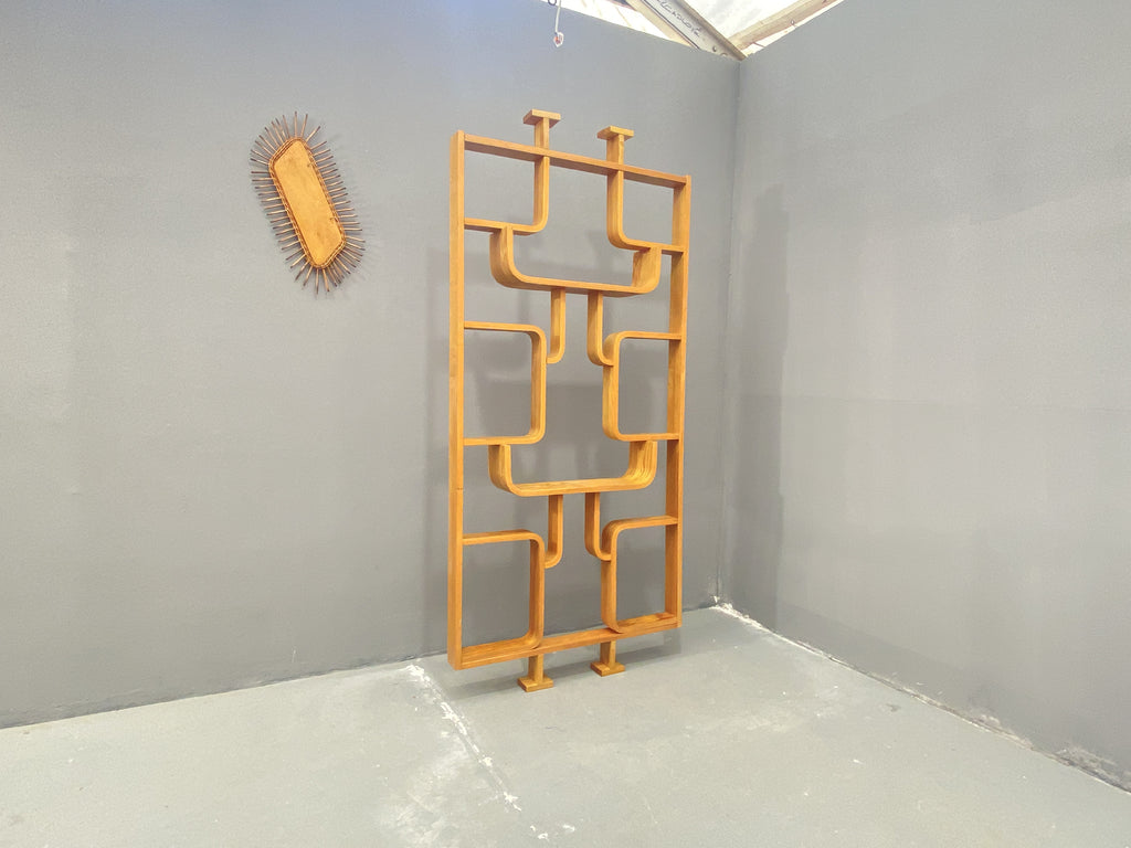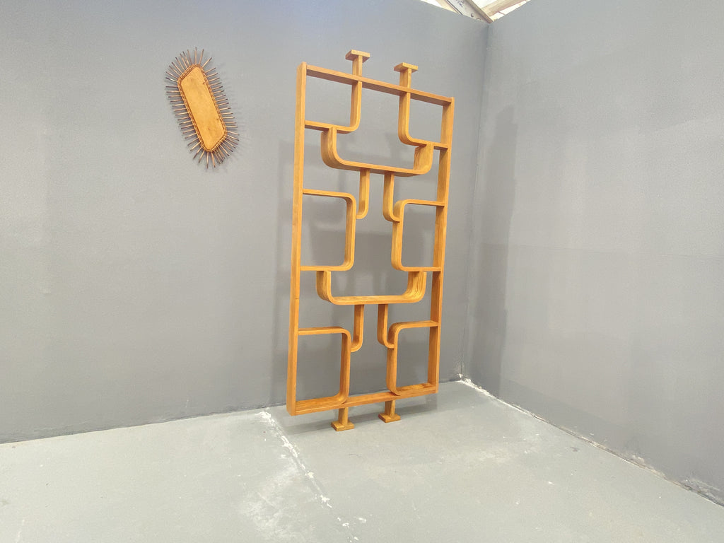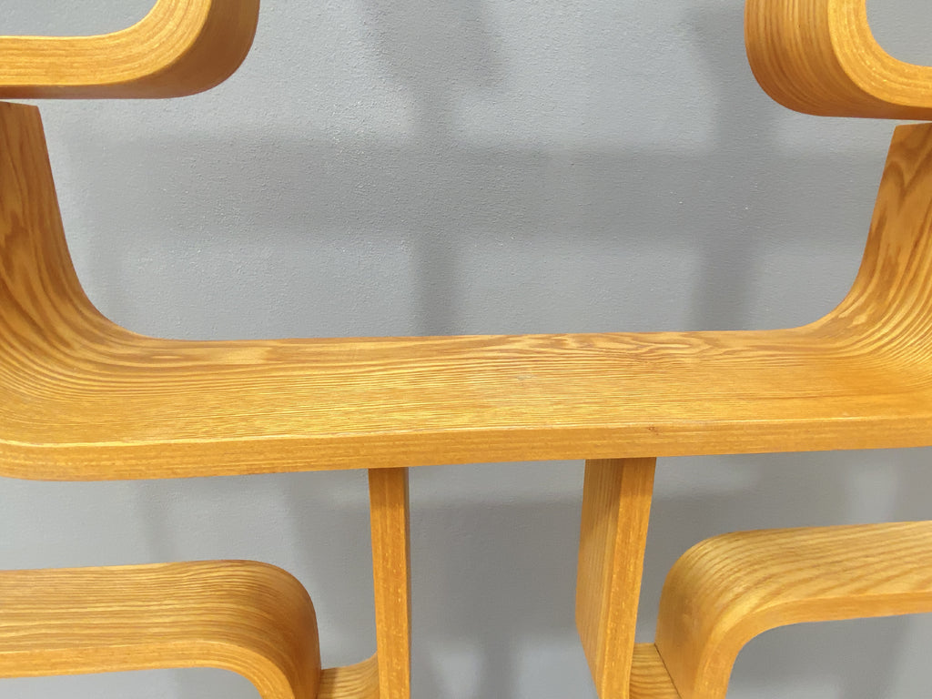 A smaller version of the famous flower wall unit , originally designed by Ludvik Volak for Drevopodnik Holesov in the 1970s. This flower wall is crafted from bent beech plywood. A perfect combination of functionality and aesthetics, it can be used as a room divider or a decorative interior element. The condition is very good, with minor signs of age and use.