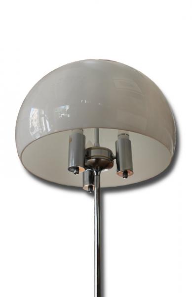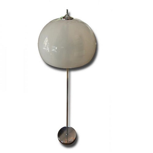 Mid century standing lamp, made in Italy. Chrome plated construction, milk glass lampshade. In excellent condition. New wiring.