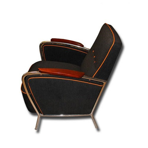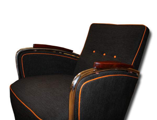Midcentury functionalist armchairs, made in Hungary, 1940´s. Chrome frame with wooden armrests. Fully restored inckuding new upholstery. In excellent condition. Price is for the pair!