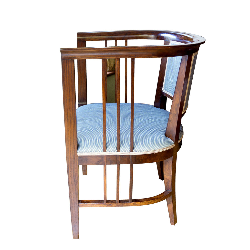 A pair of oak office armchairs, late secessionist, circa 1915. Austria-Hungary. In style of Josef Hoffmann. Fully restored. In excellent condition. For detailed image please use the magnifying glass on photos. Price is for the pair