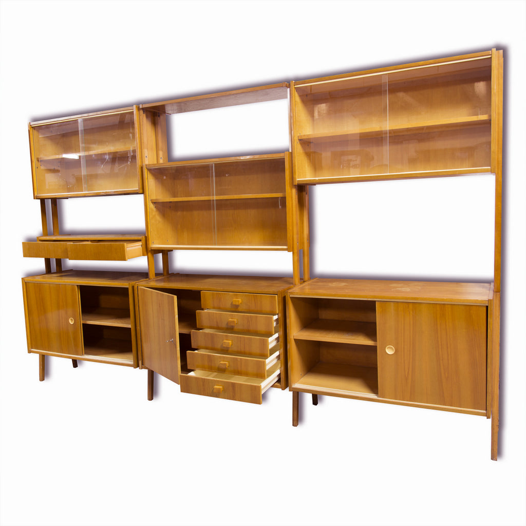 Mid Century Modern beech unit shelf system by F.Jirak, Czechoslovakia