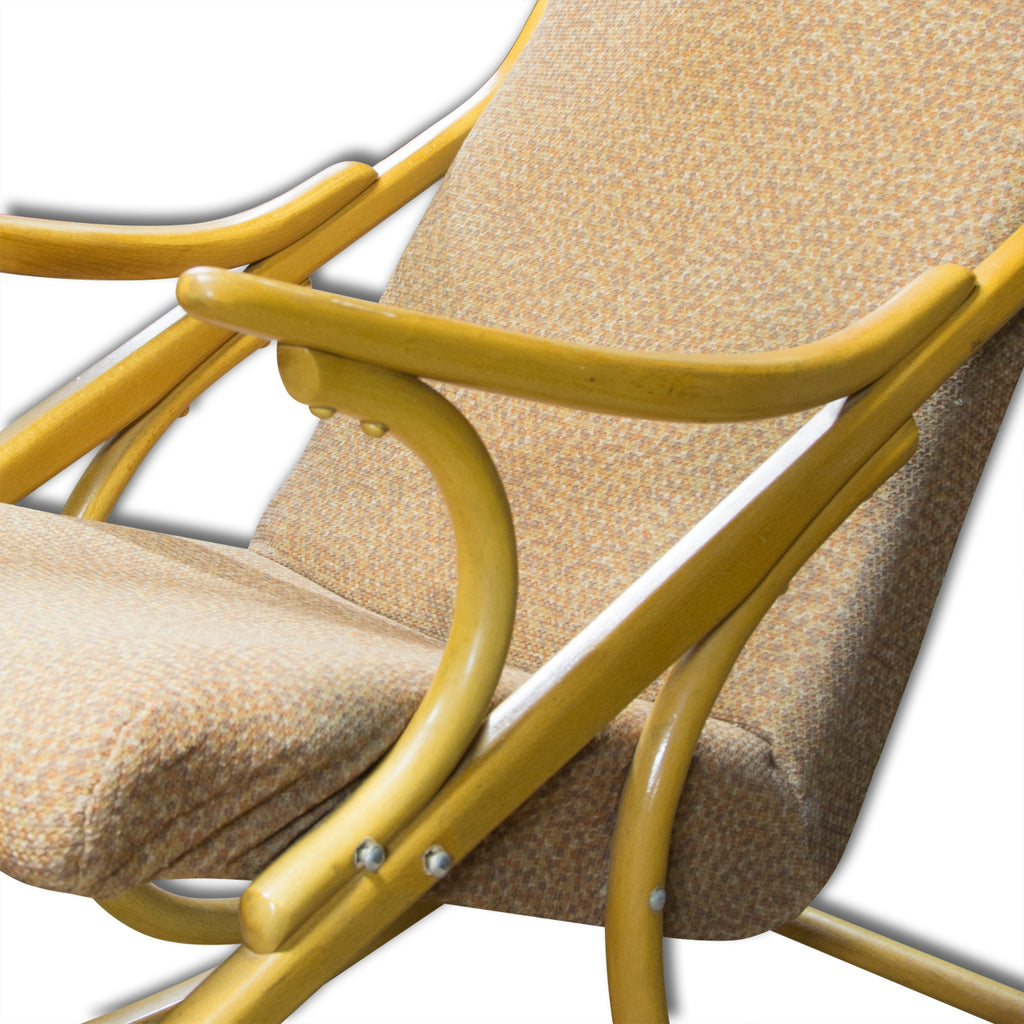 Upholstered bentwood chair, produced by TON, manufactured in Czechoslovakia in the 1960’s. It´s made from beechwood. Upholstery not cleaned. It shows sign of age through scuffs, minor abrasions or faded finishes.