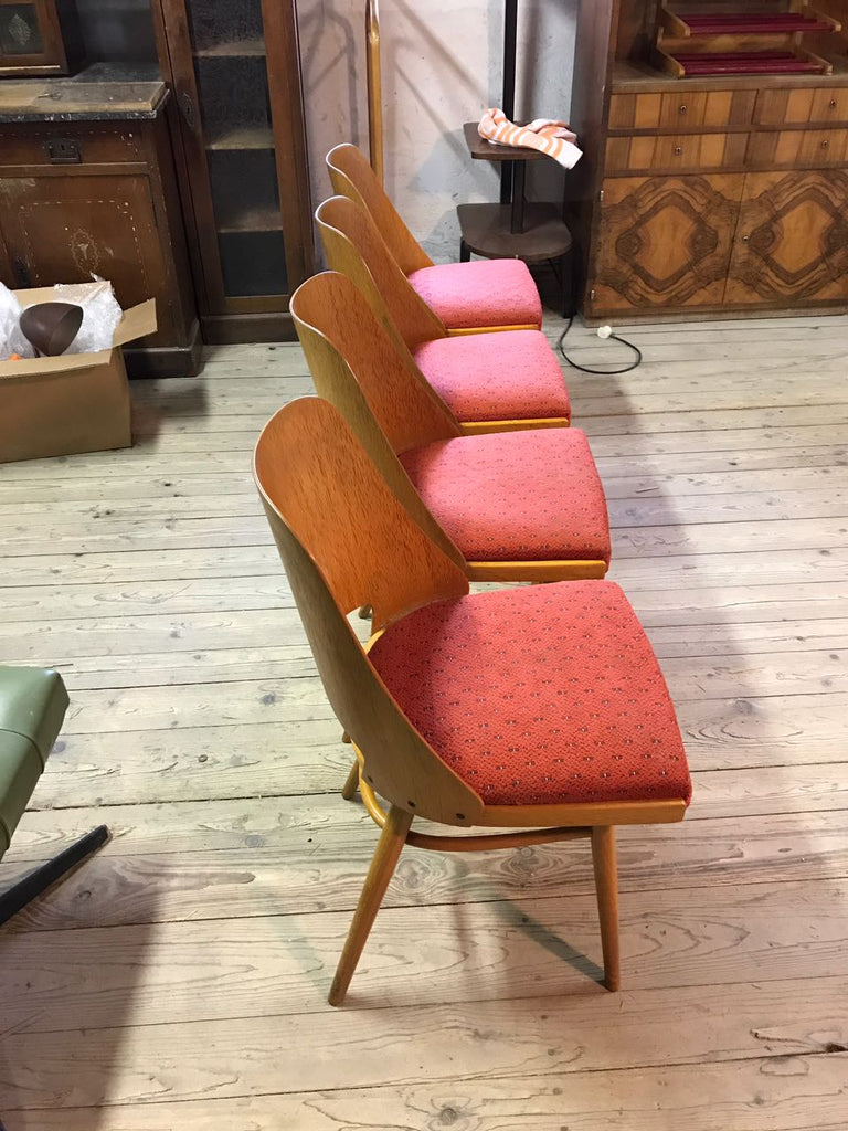 Mid Century dining chairs, 'Brussels' period, 1960s, Czechoslovakia