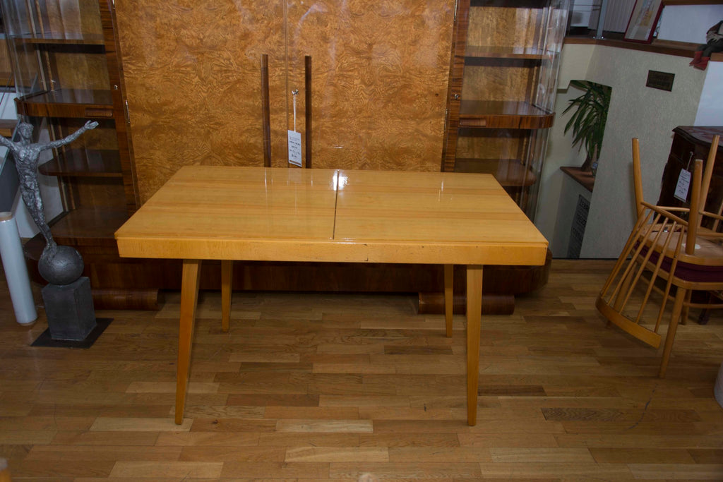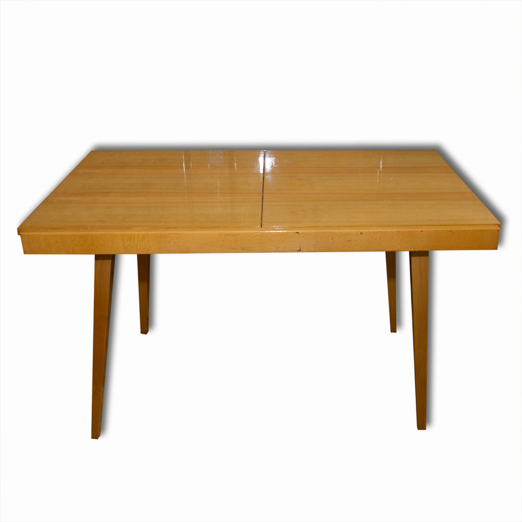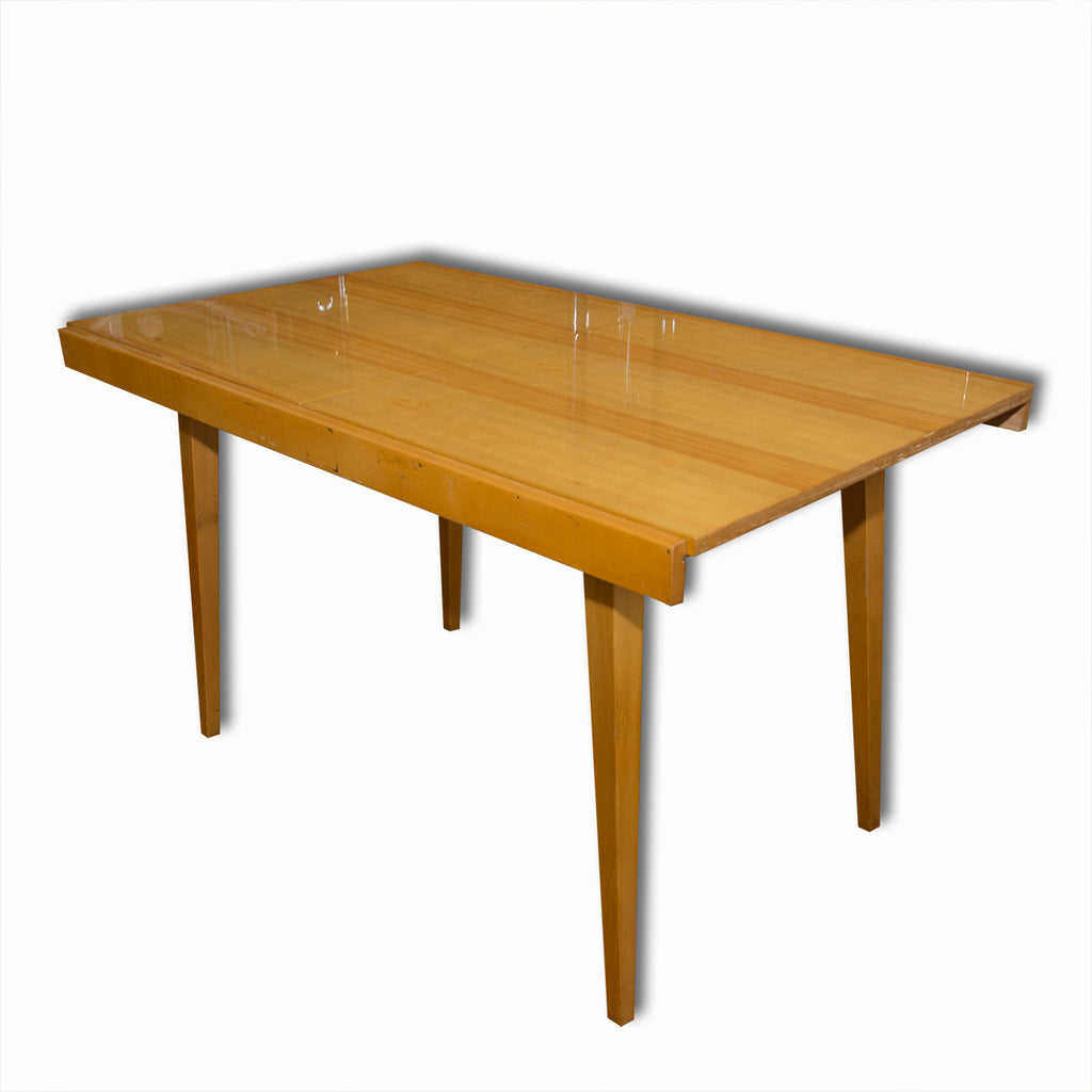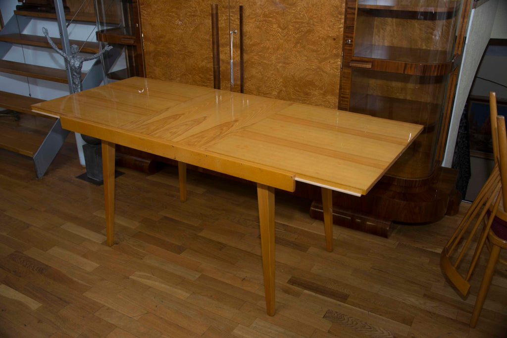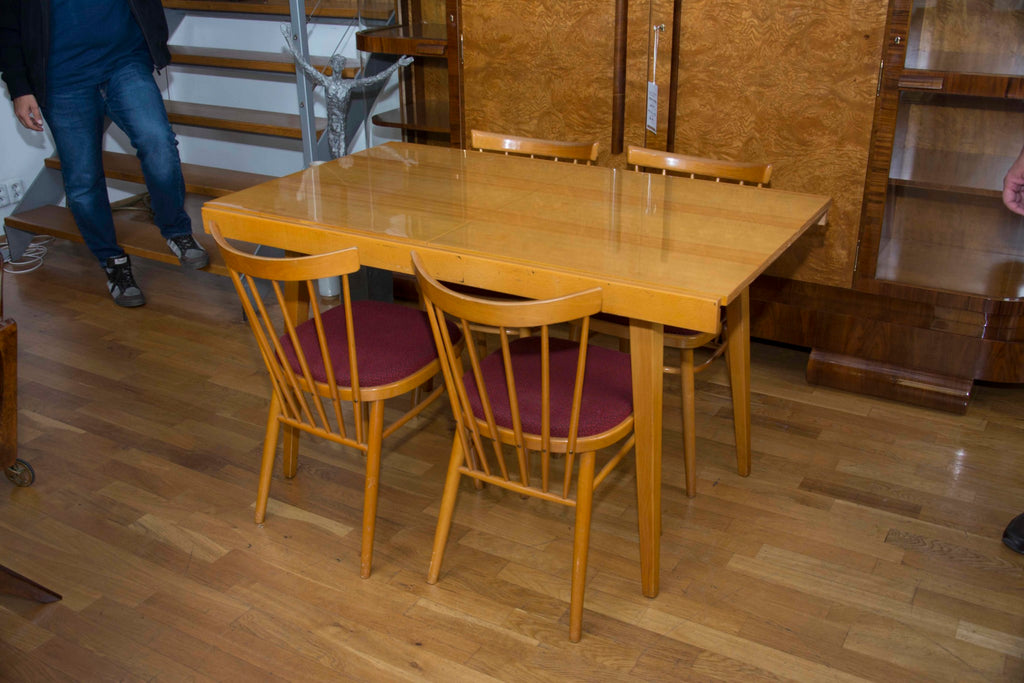 Czechoslovak Dining set, 1960´s, designed by F.Jirak & J.Kobylka and produced by Tatra nabytok. It features veneered folding dining table(F.Jirak) with four chairs(J.Kobylka). Very interesting shaping. In excellent condition. Polished veneer.
