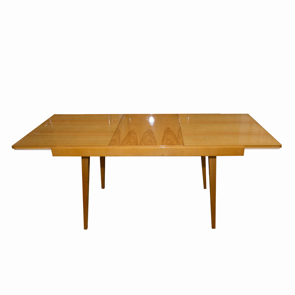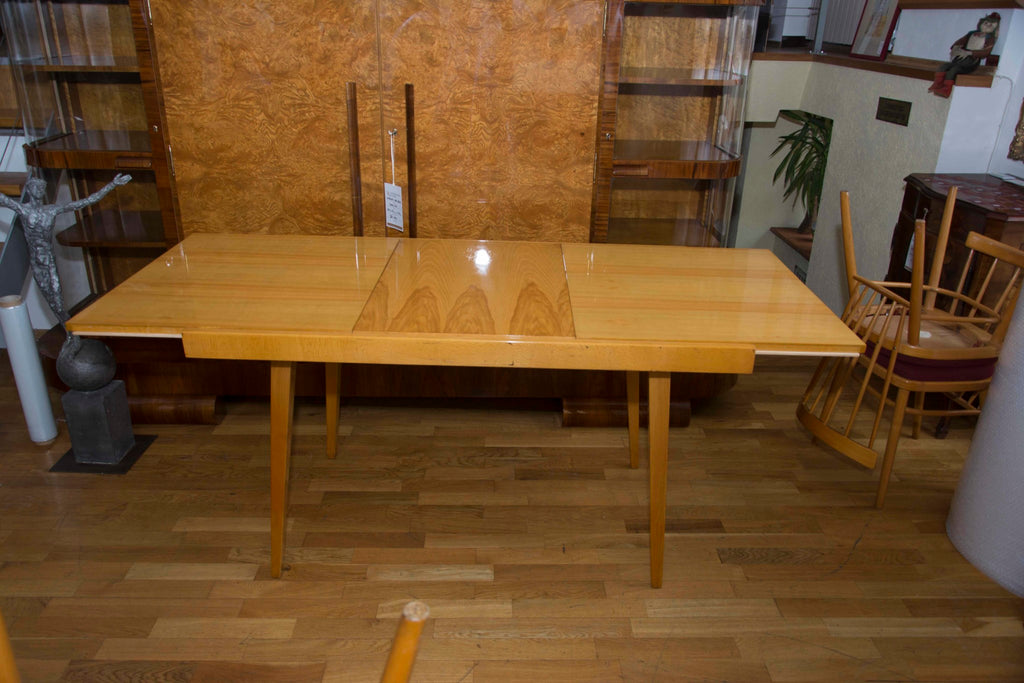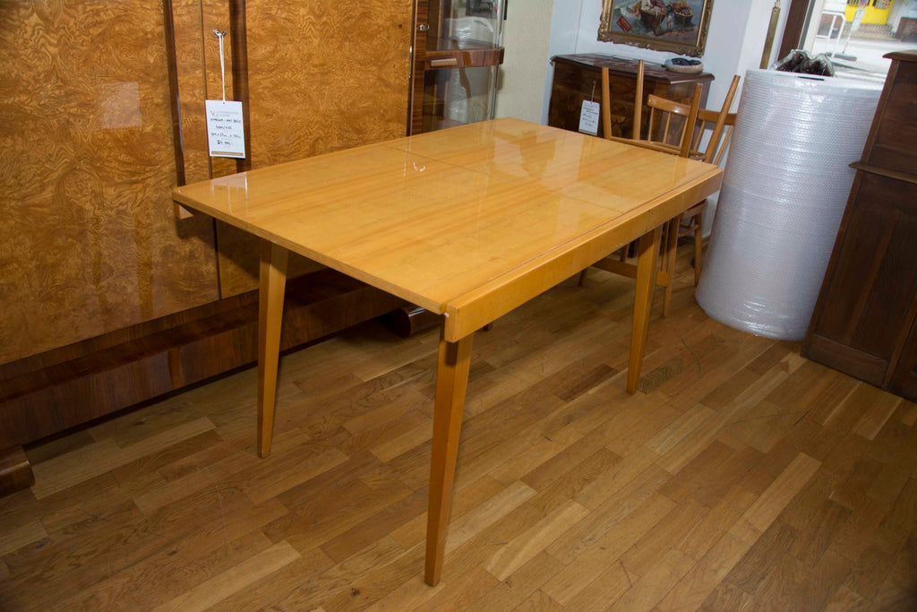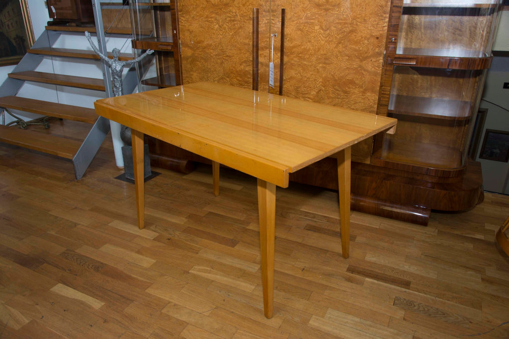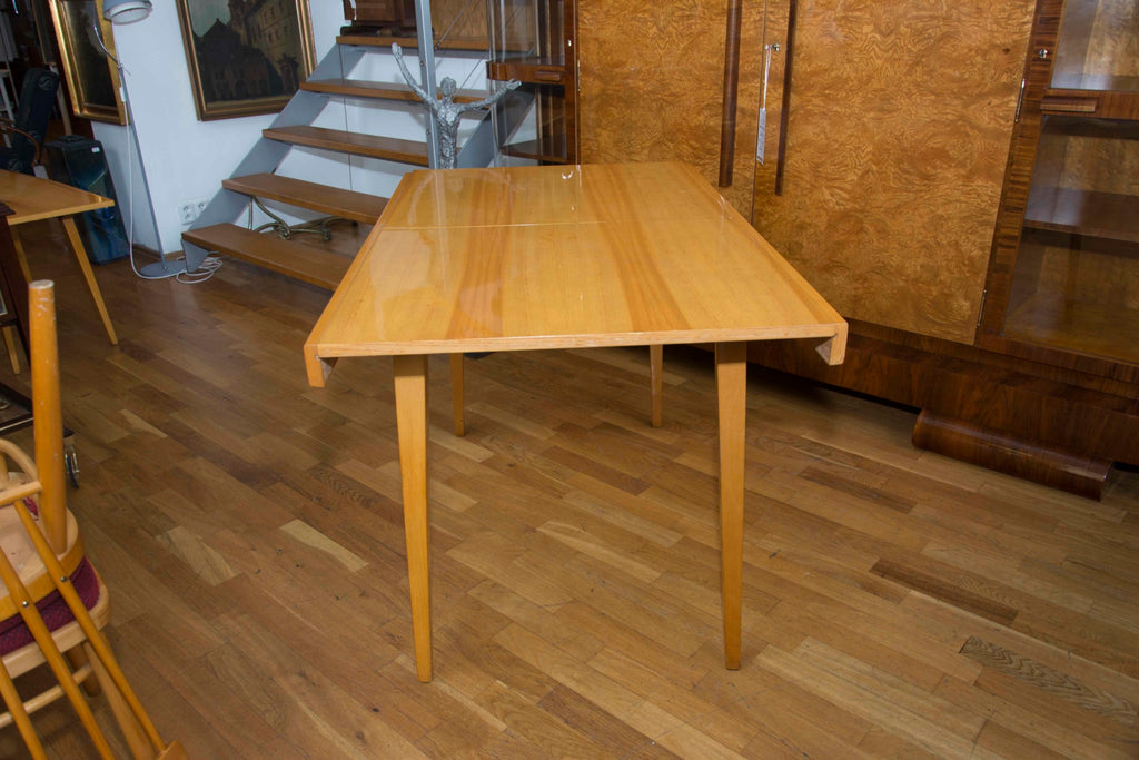 Czechoslovak Dining set, 1960´s, designed by F.Jirak & J.Kobylka and produced by Tatra nabytok. It features veneered folding dining table(F.Jirak) with four chairs(J.Kobylka). Very interesting shaping. In excellent condition. Polished veneer.