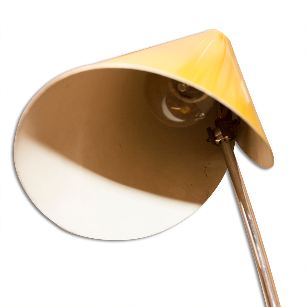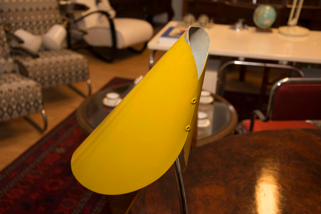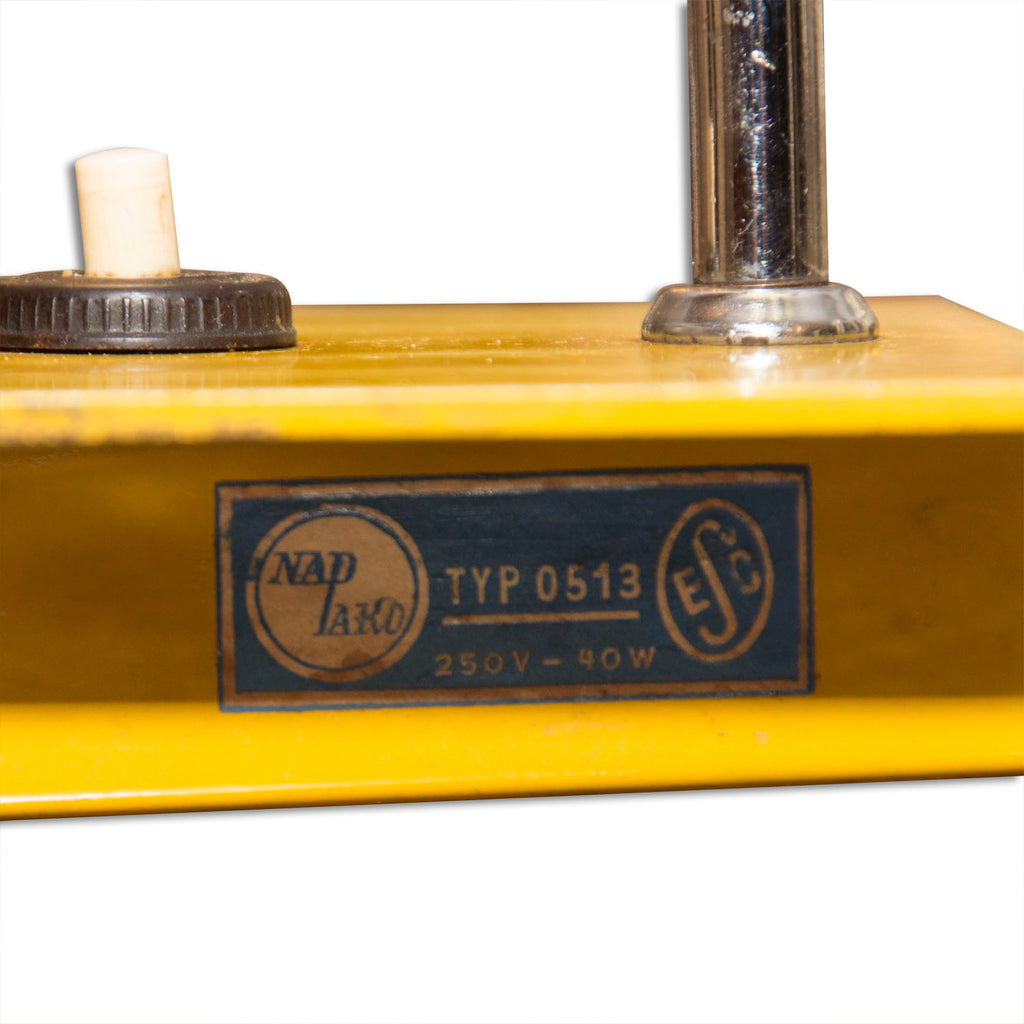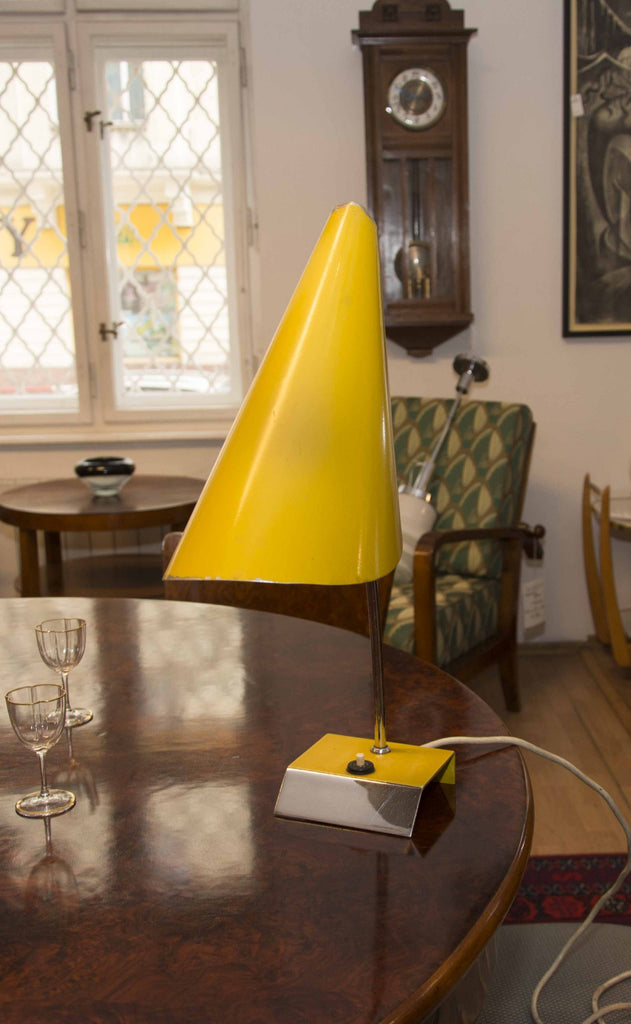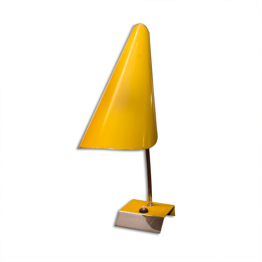 Mid century desk lamp called nun, it was designed by Josef Hurka for Napako. This lamp is one of the most beautifull lamps from this designer and it was associated with "Brussels period" and world-renowned EXPO58. It features a chrome plated construction and tin laquered lampshade in shape of cone is attached on ball-joint. Other material: aluminum, plastic. Fully functional, original wiring, on the paint are small abrasions, otherwise in very good condition.