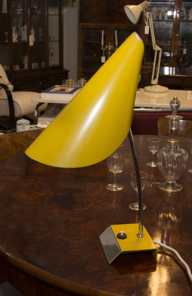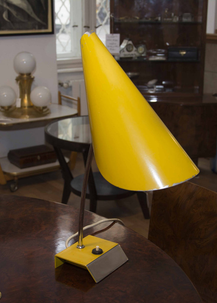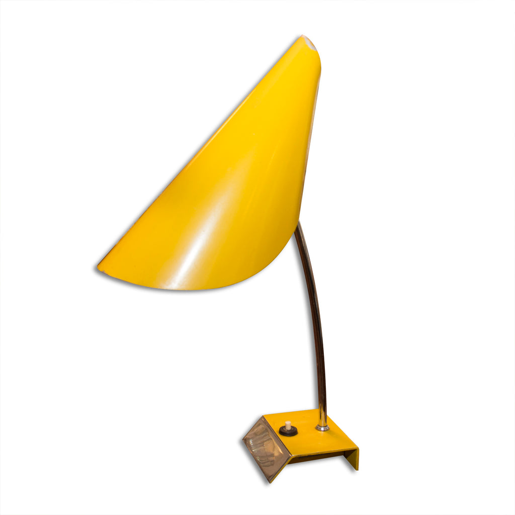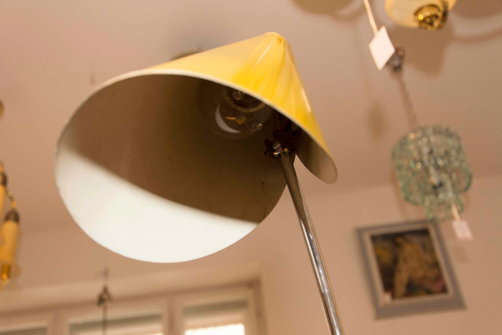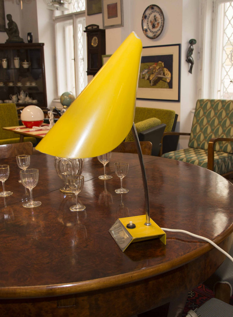 Mid century desk lamp called nun, it was designed by Josef Hurka for Napako. This lamp is one of the most beautifull lamps from this designer and it was associated with "Brussels period" and world-renowned EXPO58. It features a chrome plated construction and tin laquered lampshade in shape of cone is attached on ball-joint. Other material: aluminum, plastic. Fully functional, original wiring, on the paint are small abrasions, otherwise in very good condition.