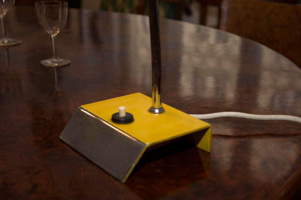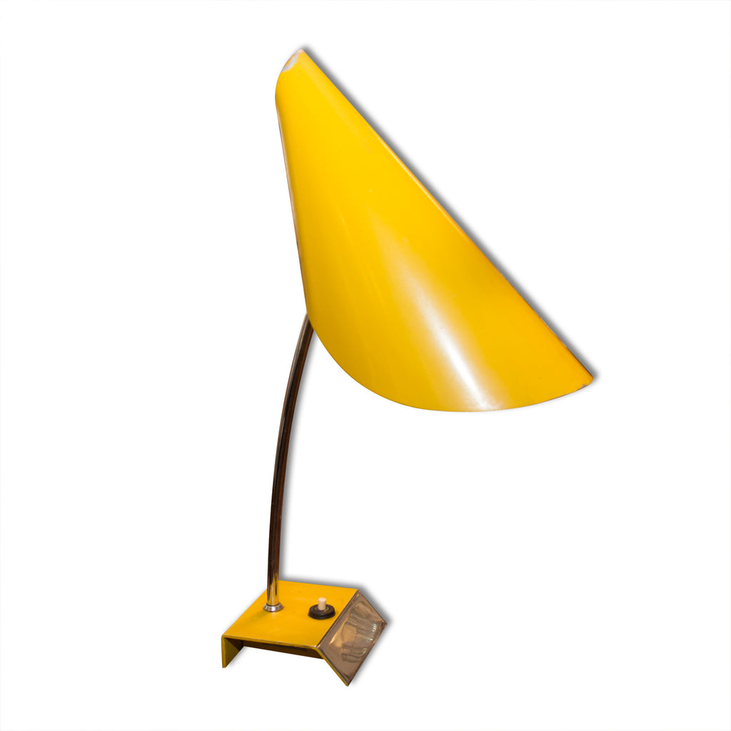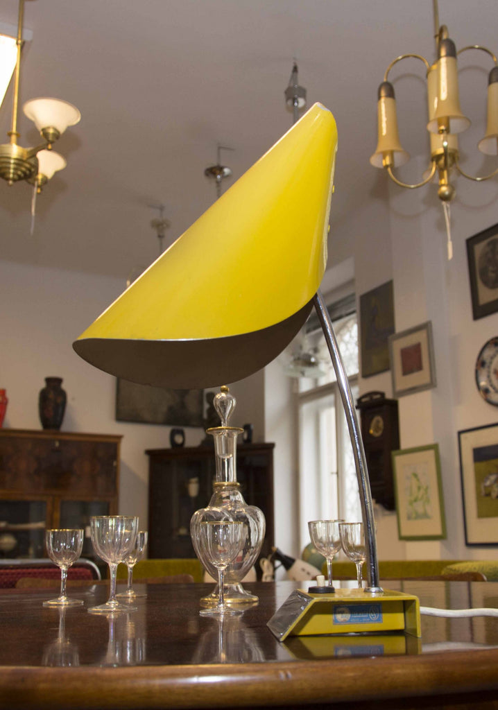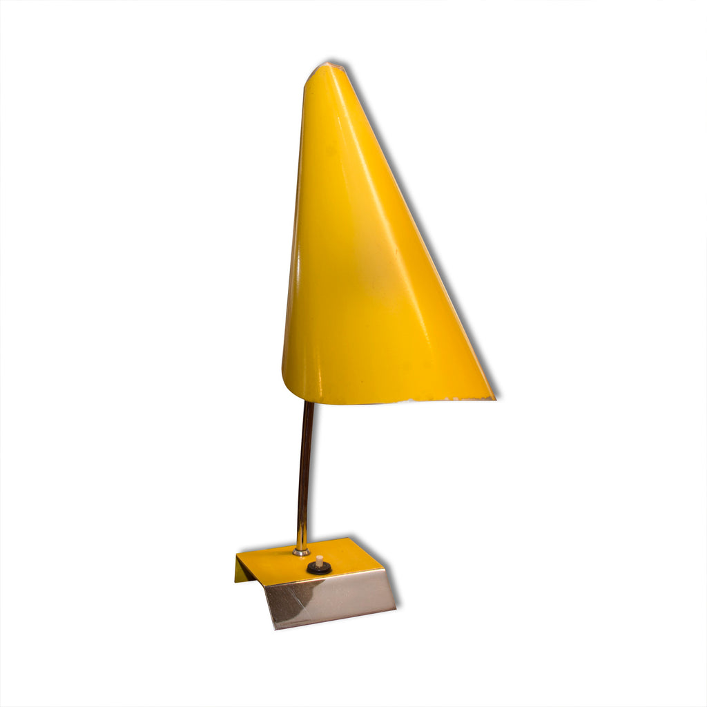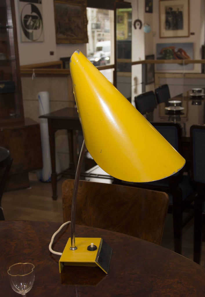 Mid century desk lamp called nun, it was designed by Josef Hurka for Napako. This lamp is one of the most beautifull lamps from this designer and it was associated with "Brussels period" and world-renowned EXPO58. It features a chrome plated construction and tin laquered lampshade in shape of cone is attached on ball-joint. Other material: aluminum, plastic. Fully functional, original wiring, on the paint are small abrasions, otherwise in very good condition.