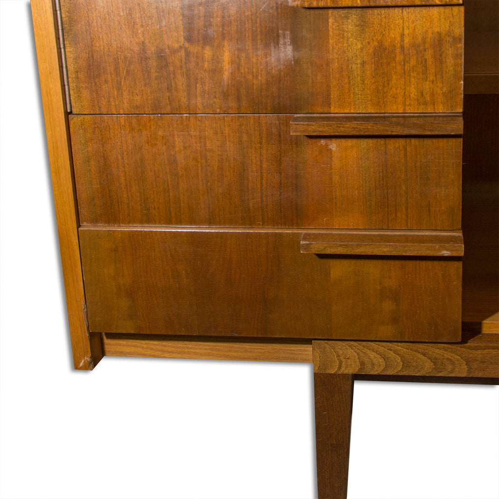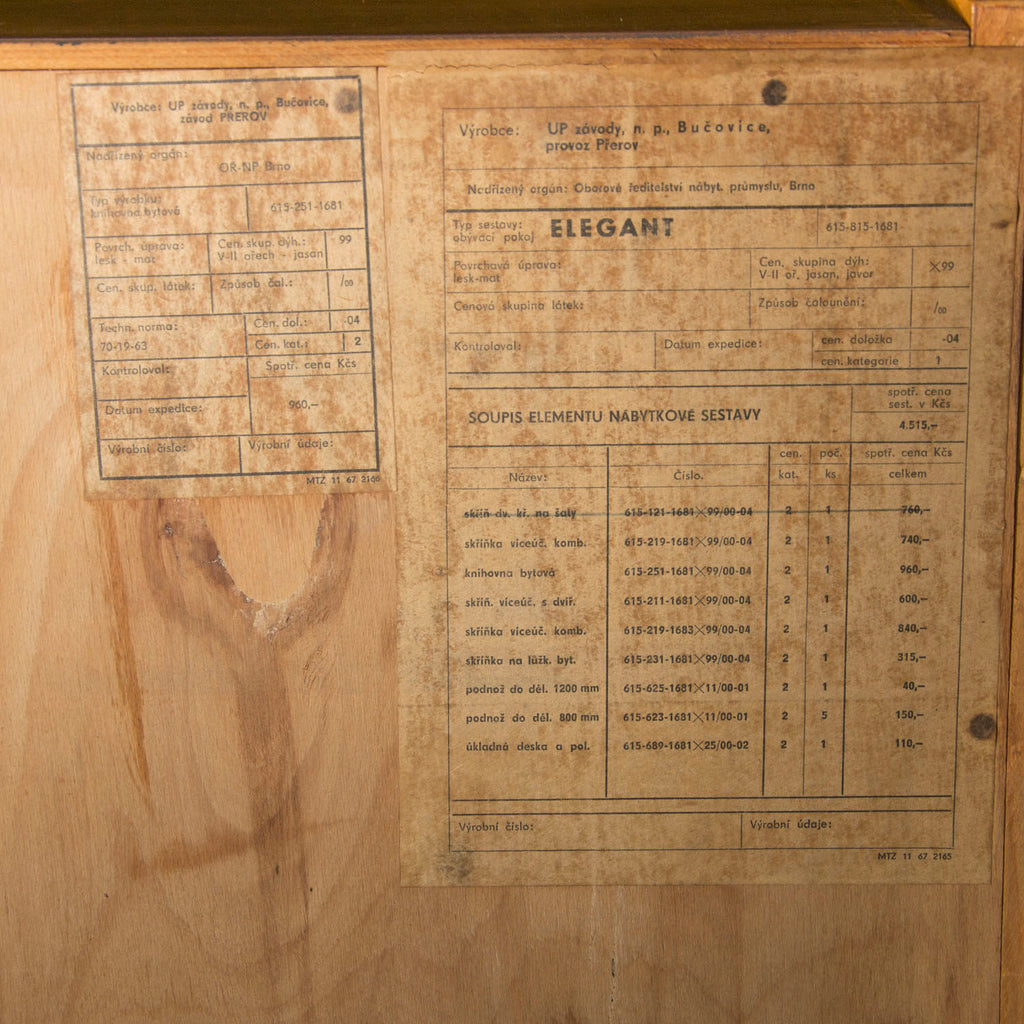 Mid century Czechoslovak Library cabinet, designed by Frantisek Mezulánik and produced by ÚP Závody in the 1960´s. Material: wood, plywood, walnut veneer. The cabinet is in its good original condition with signs of age and use through minor abrasions.