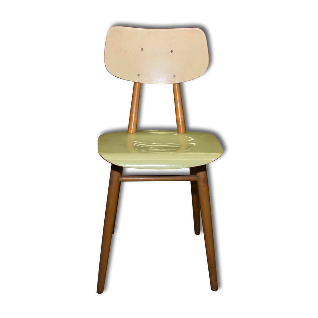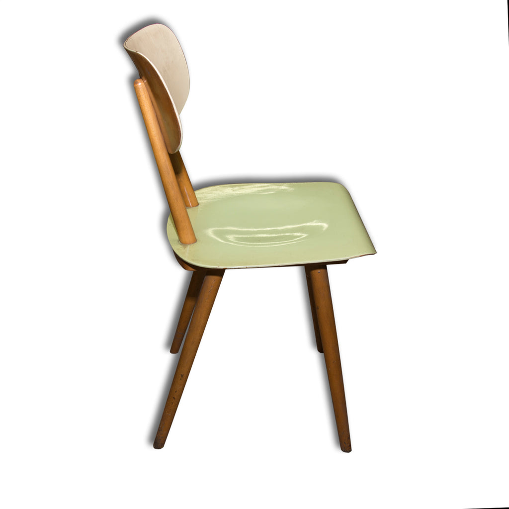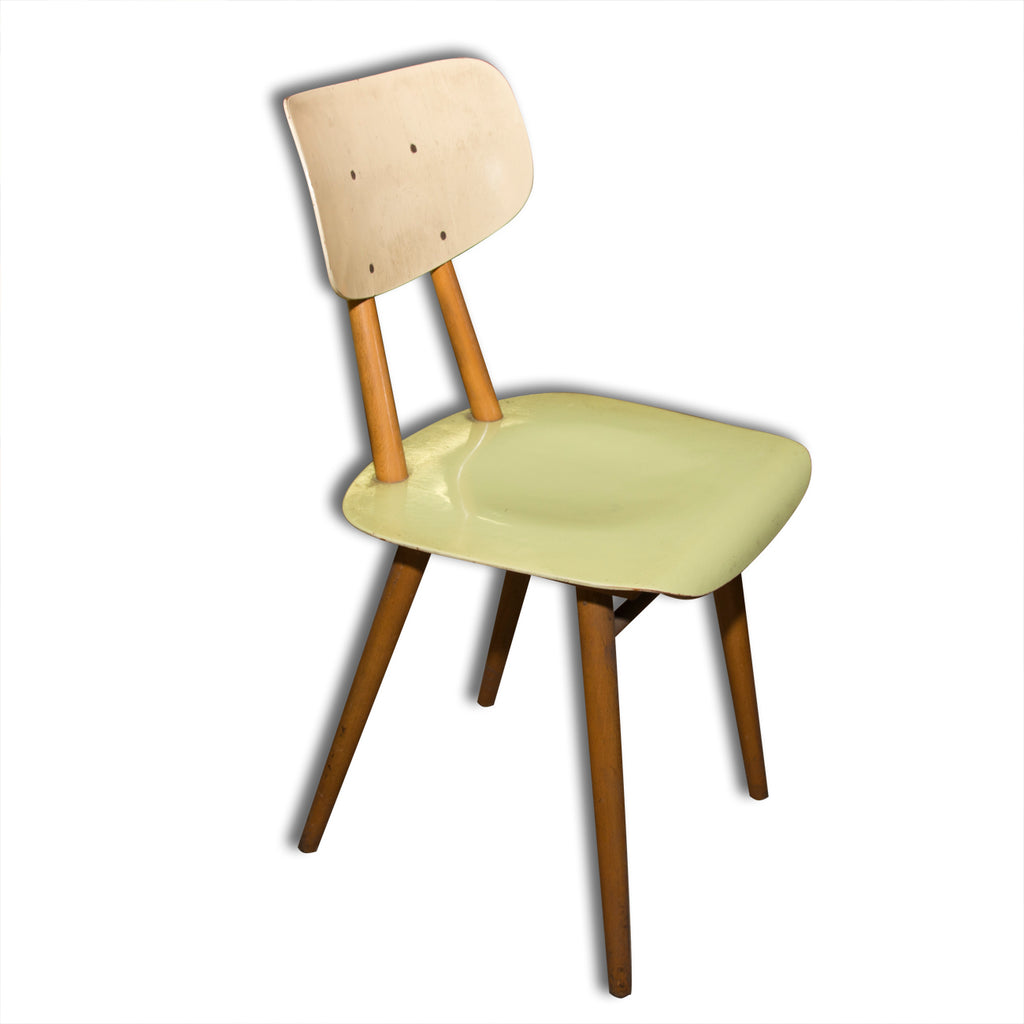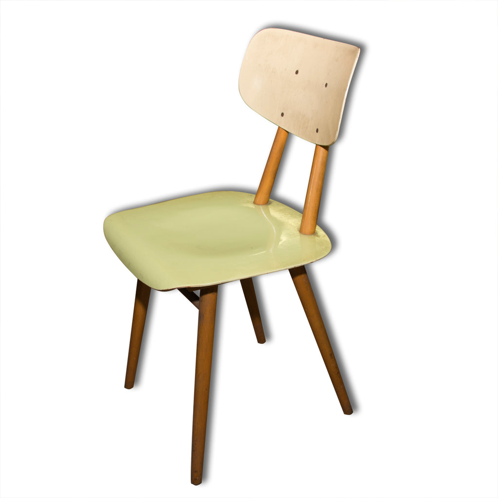 Set of four chairs from the 1960´s. It was produced by TON, Bystřice nad Hostýnem, Czechoslovakia. The TON company was established as successor to the famous Thonet after World War II in Czechoslovakia and continued the production of bentwood furniture. It features a beechwood construction and lacuered seats and backrests. In good condition with some sign of age and use. Price is for the complet of four.