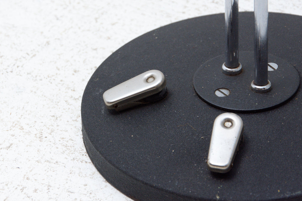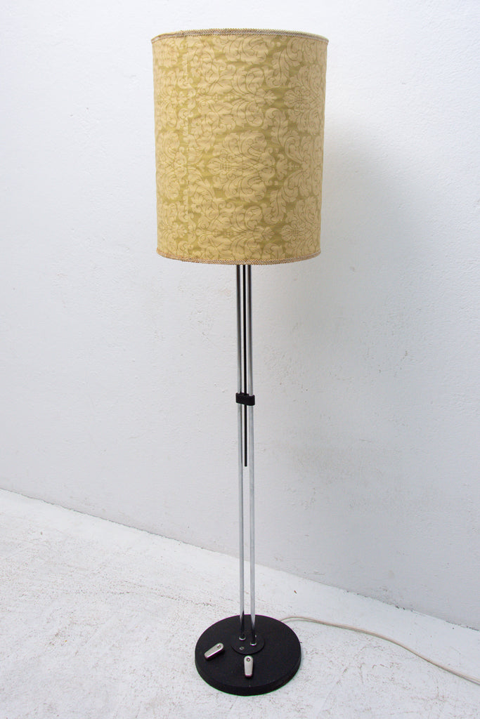 Stylish floor lamp made in the 70s by Lidokov company in the former Czechoslovakia. It has a metal stand, plastic and fabric shade and two switches located on the base. This lamp is equipped with one E27 bulb and has new wiring.