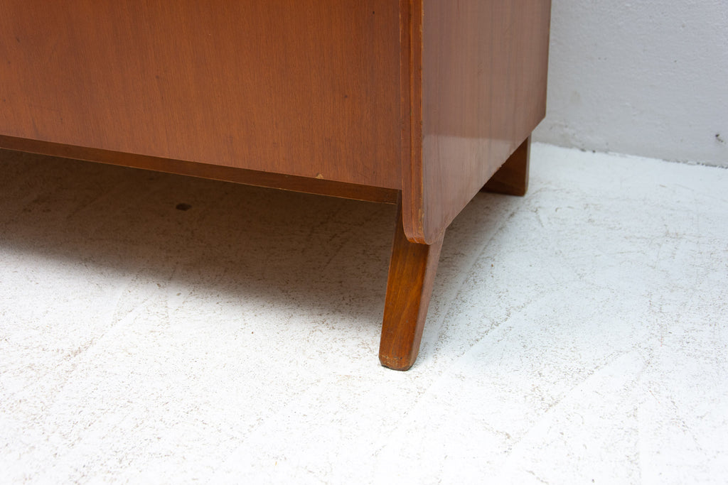 Mid century Vintage wardrobe from the 1960´s. It was designed by Frantisek Jirák and manufactured by Nový Domov company in the former Czechoslovakia. Mahogany veneer. In good Vintage condition, showing signs of age and using.