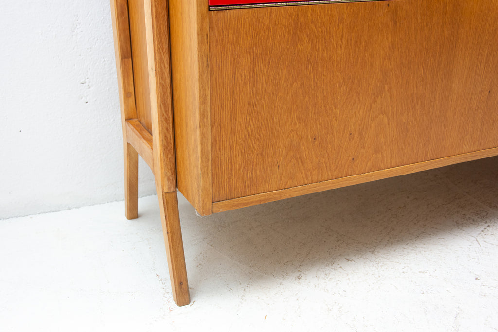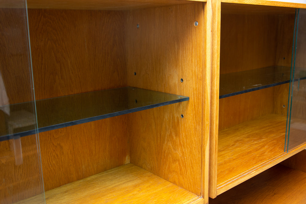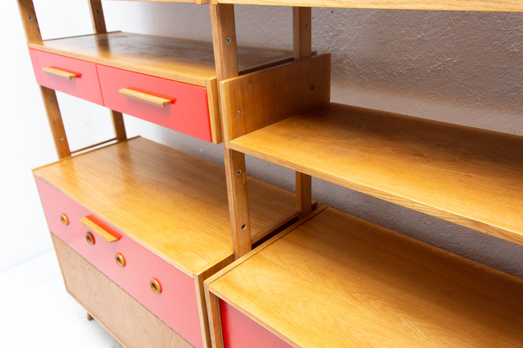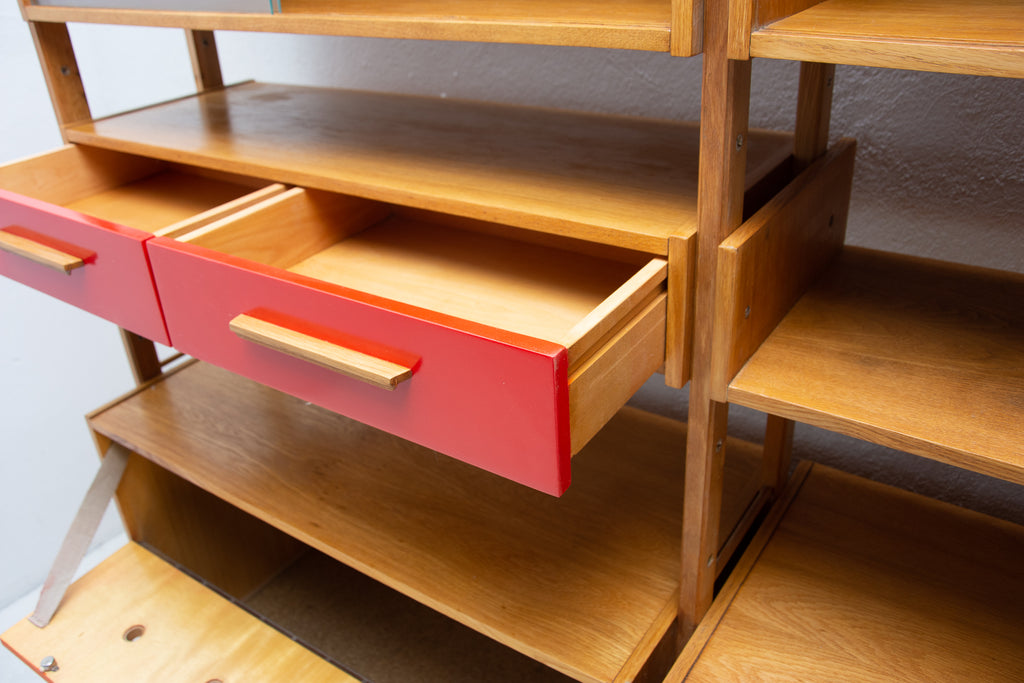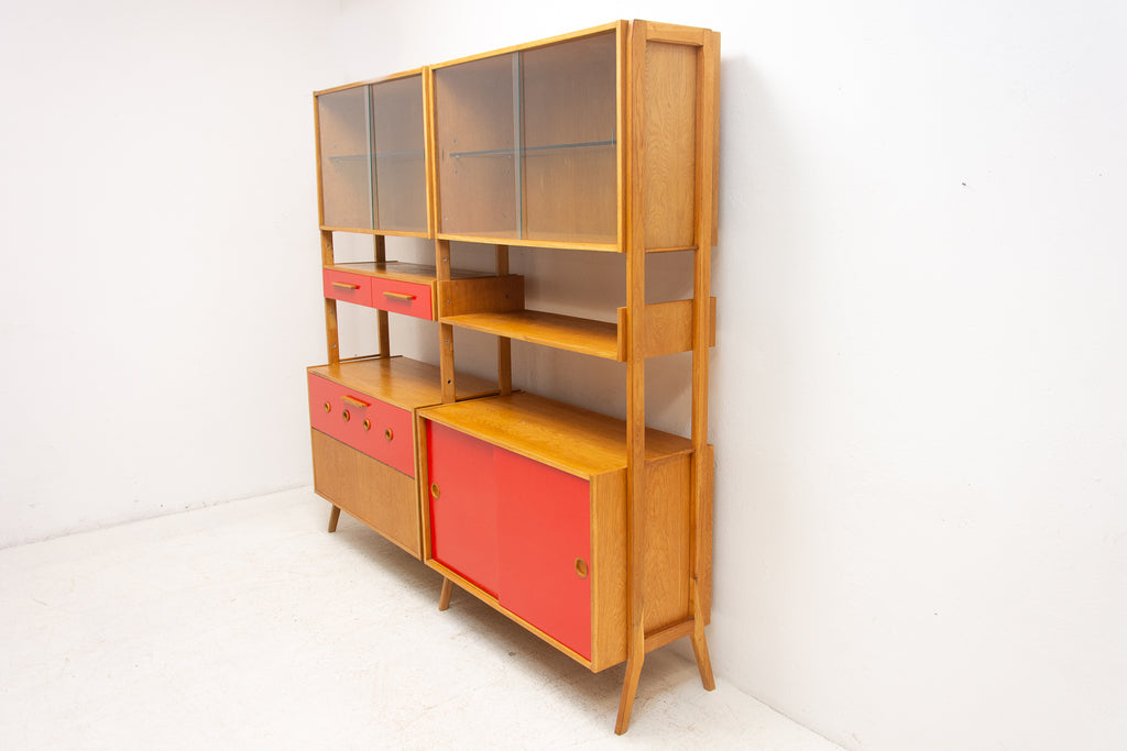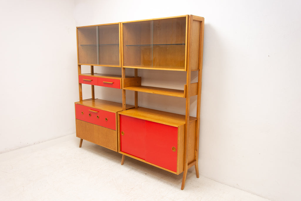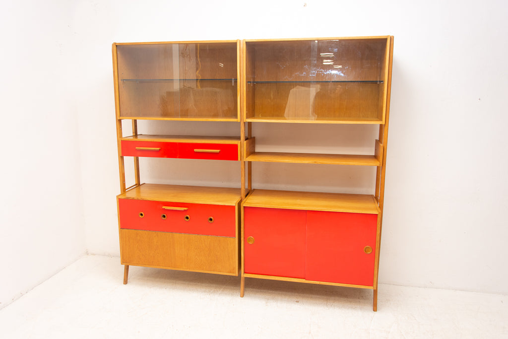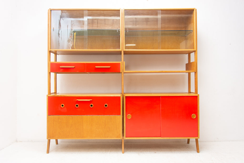 Mid century wall shelf system from the 1960´s. It was designed by Frantisek Jirák and was made by Tatra nábytok company in the former Czechoslovakia. It was renovated, in very good condition. Beech wood veneer.