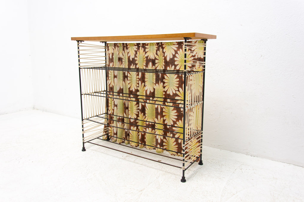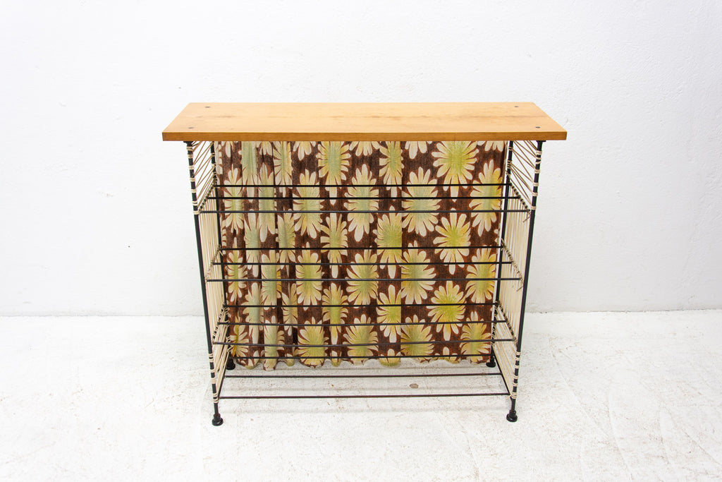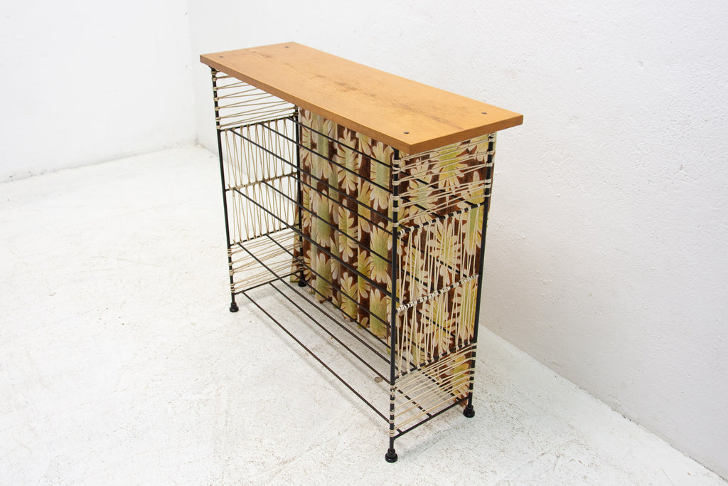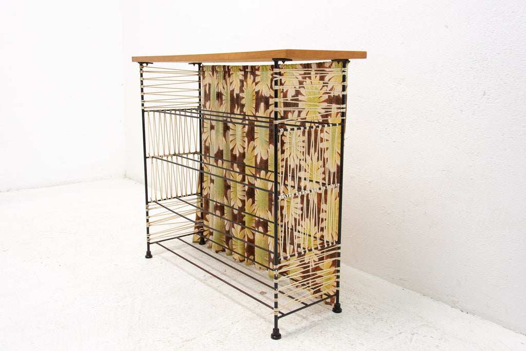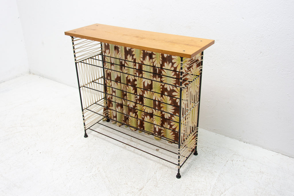 Vintage colour sheet metal shoe rack, Eastern bloc, 3 shelves, metal rods for the shoes inside, original paint, bears signs of age and wear, but generally in good Vintage condition. Made of metal, plastic, fabric, wood. Made in the former Czechoslovakia in the 1960´s