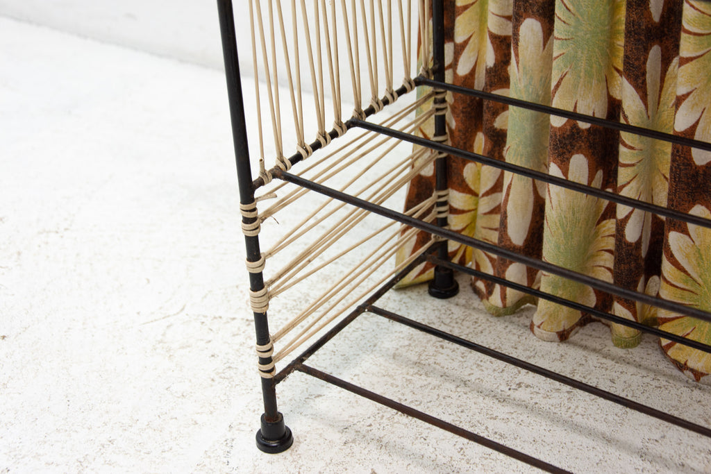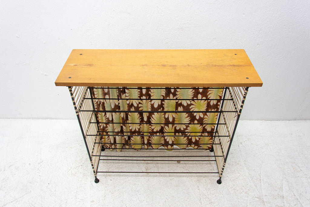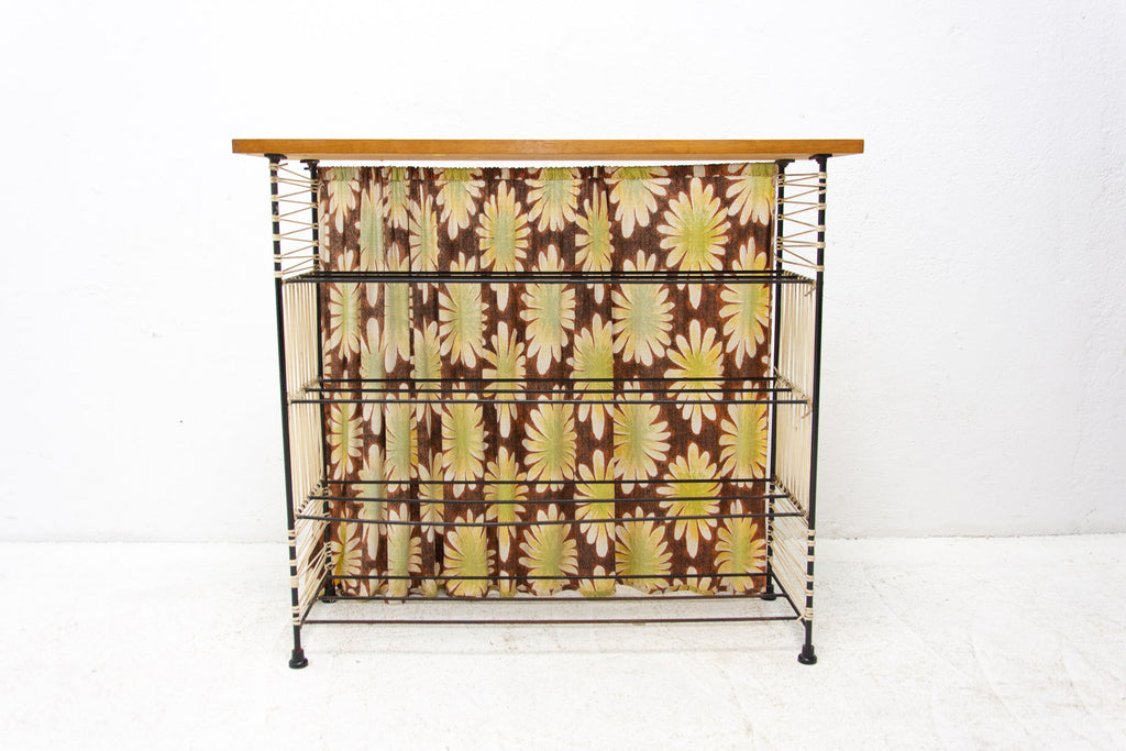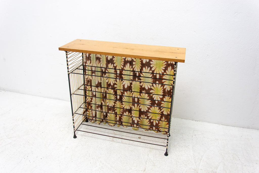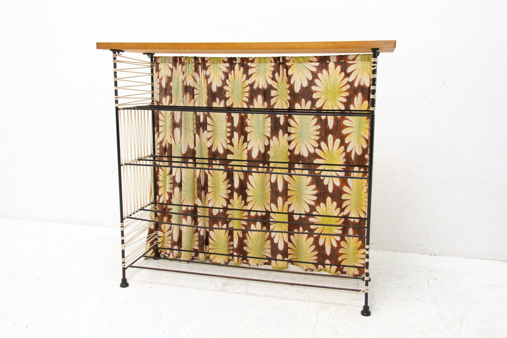 Vintage colour sheet metal shoe rack, Eastern bloc, 3 shelves, metal rods for the shoes inside, original paint, bears signs of age and wear, but generally in good Vintage condition. Made of metal, plastic, fabric, wood. Made in the former Czechoslovakia in the 1960´s