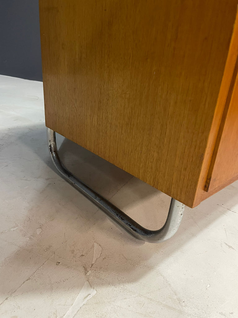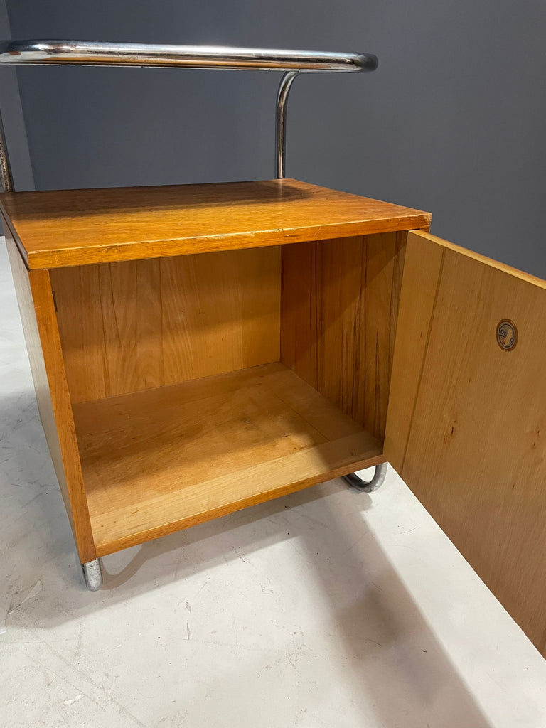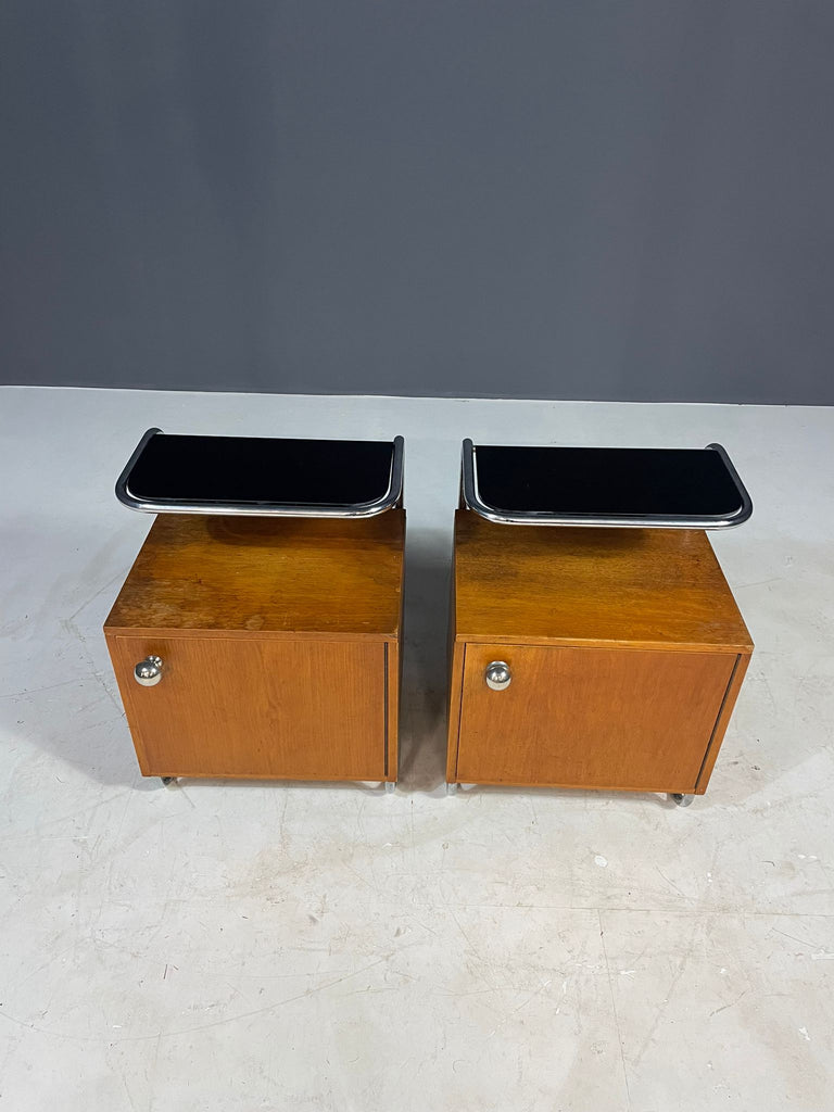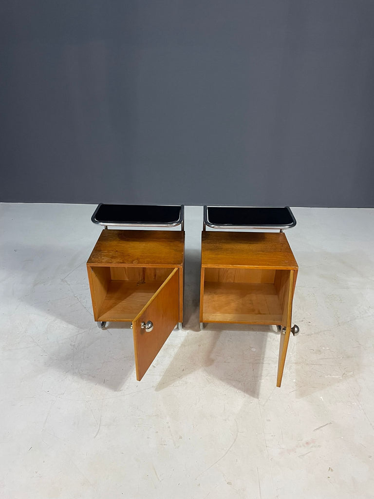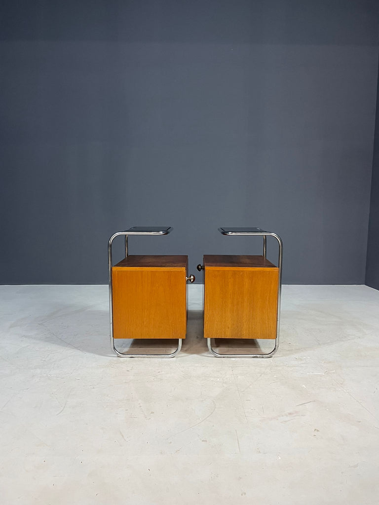 Bauhaus Bedside Tables, 1930s, Chrome and Wood, Czechoslovakia
