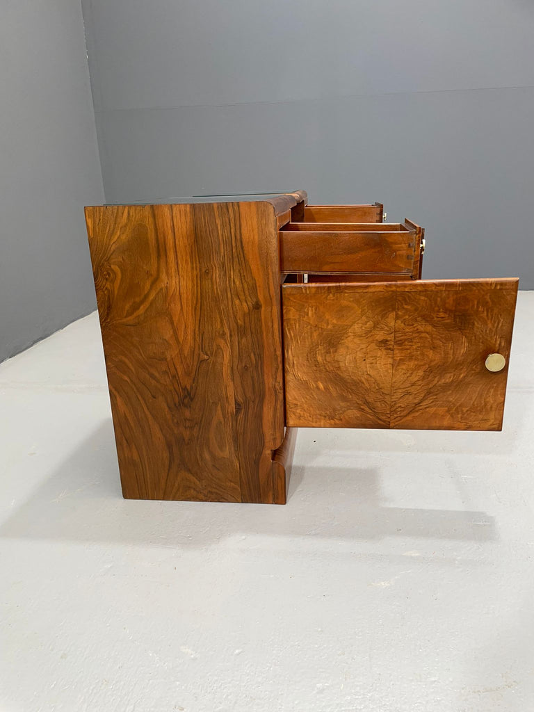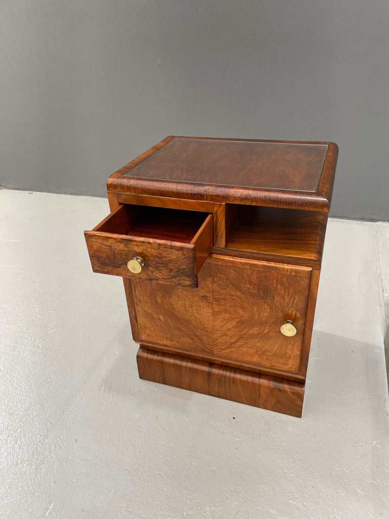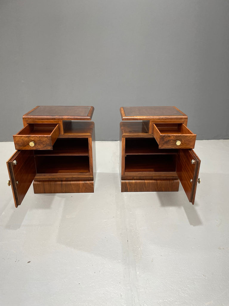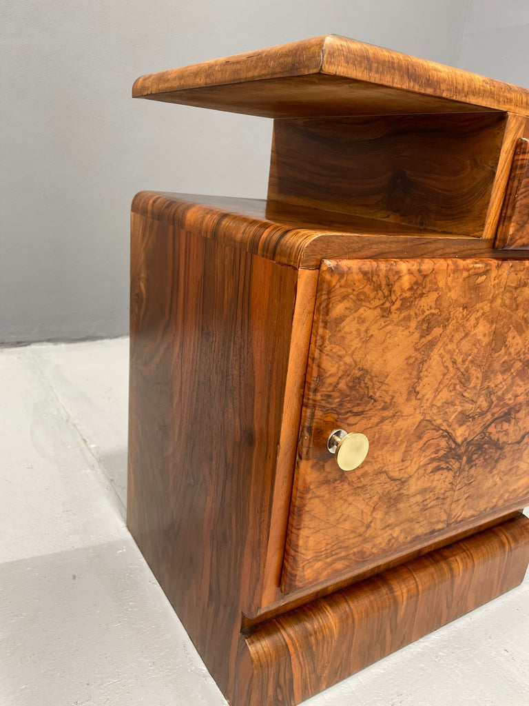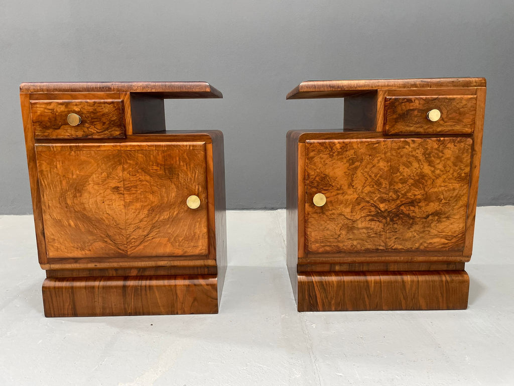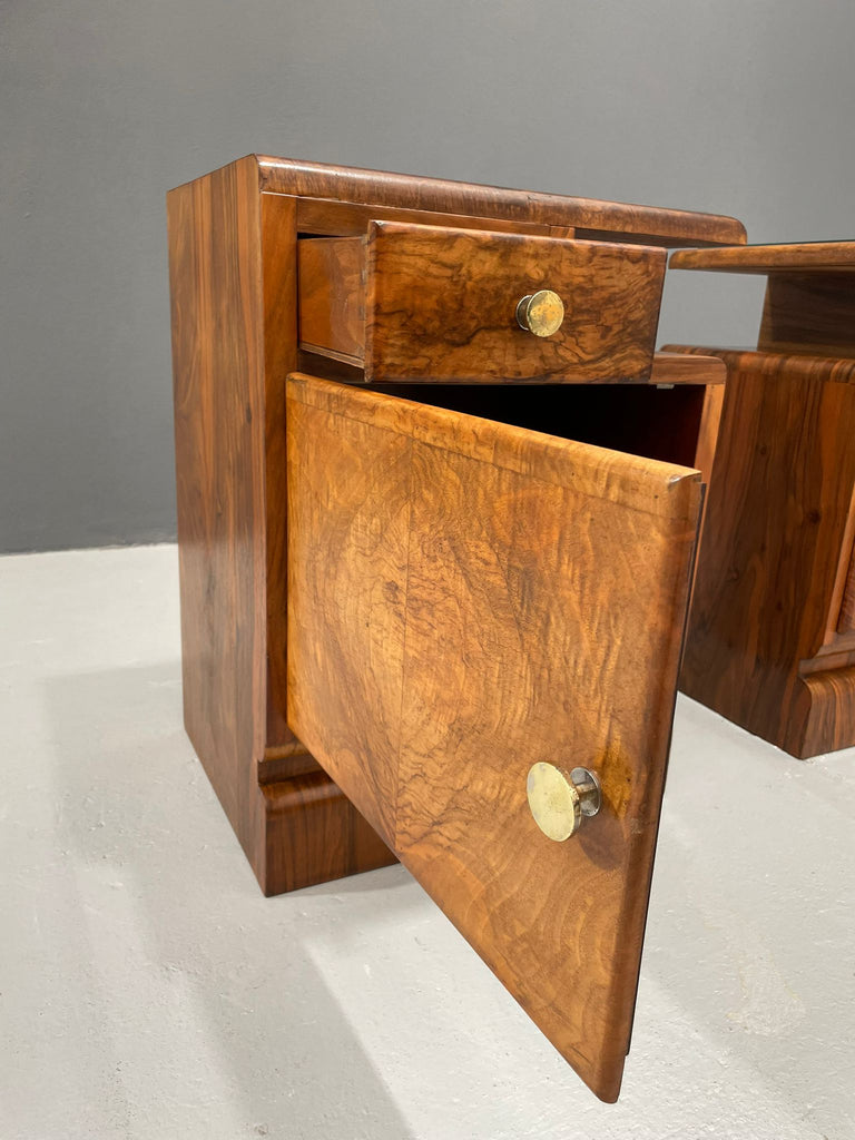 Renovated 1930s Art Deco Bedside Tables – Vintage Czechoslovak Nightstands in Walnut Veneer (Pair)