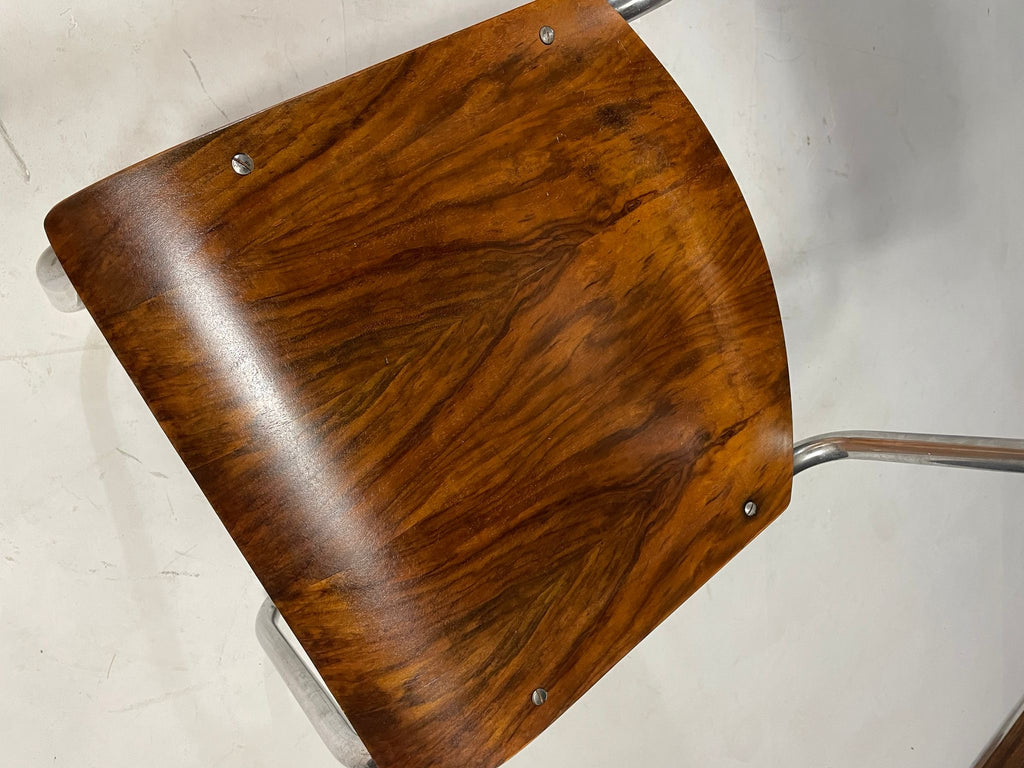 A vintage dining chair from the 1970s, made in former Czechoslovakia, designed in the style of Marcel Breuer – a key figure of the Bauhaus and modernist movement.