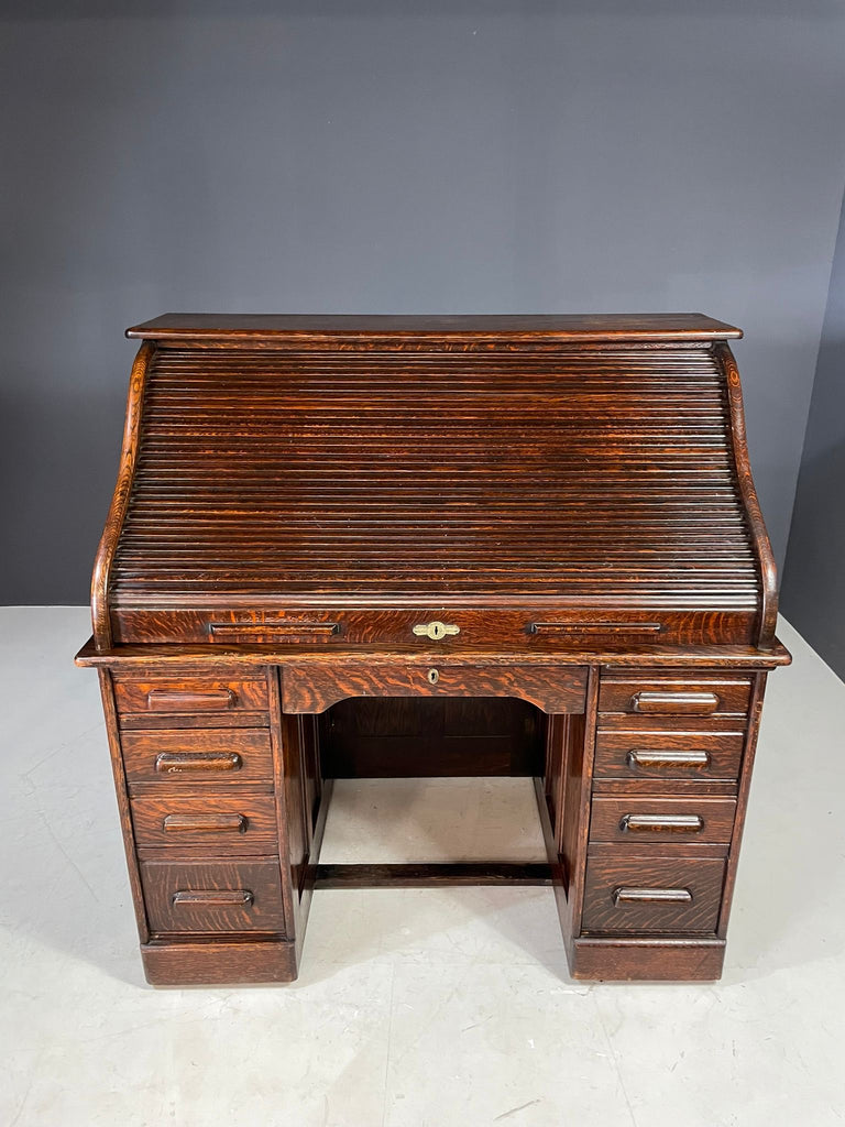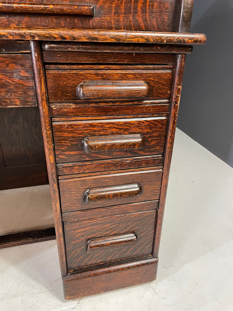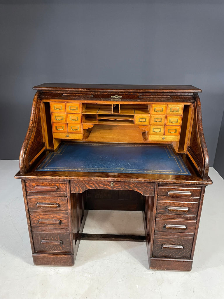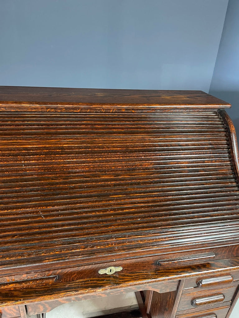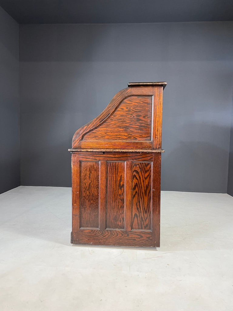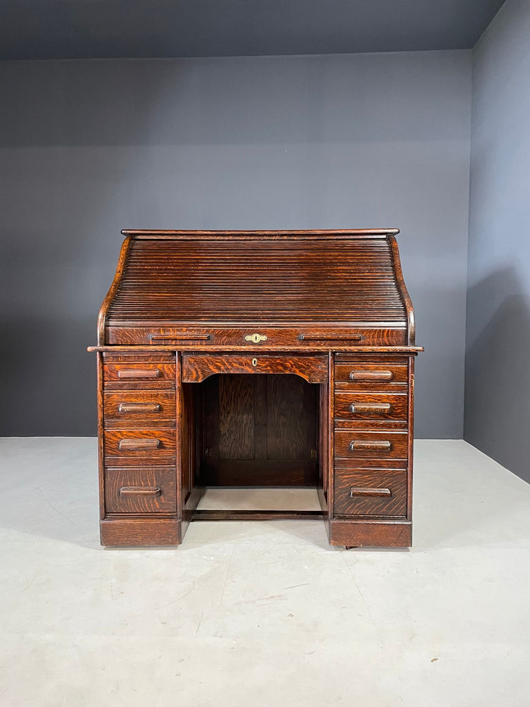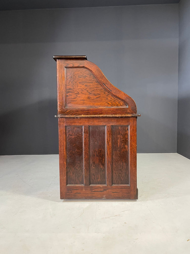 American Roll-Top Desk, Solid Oak, Czechoslovakia, 1930s