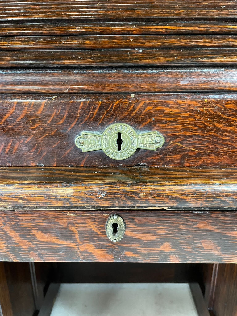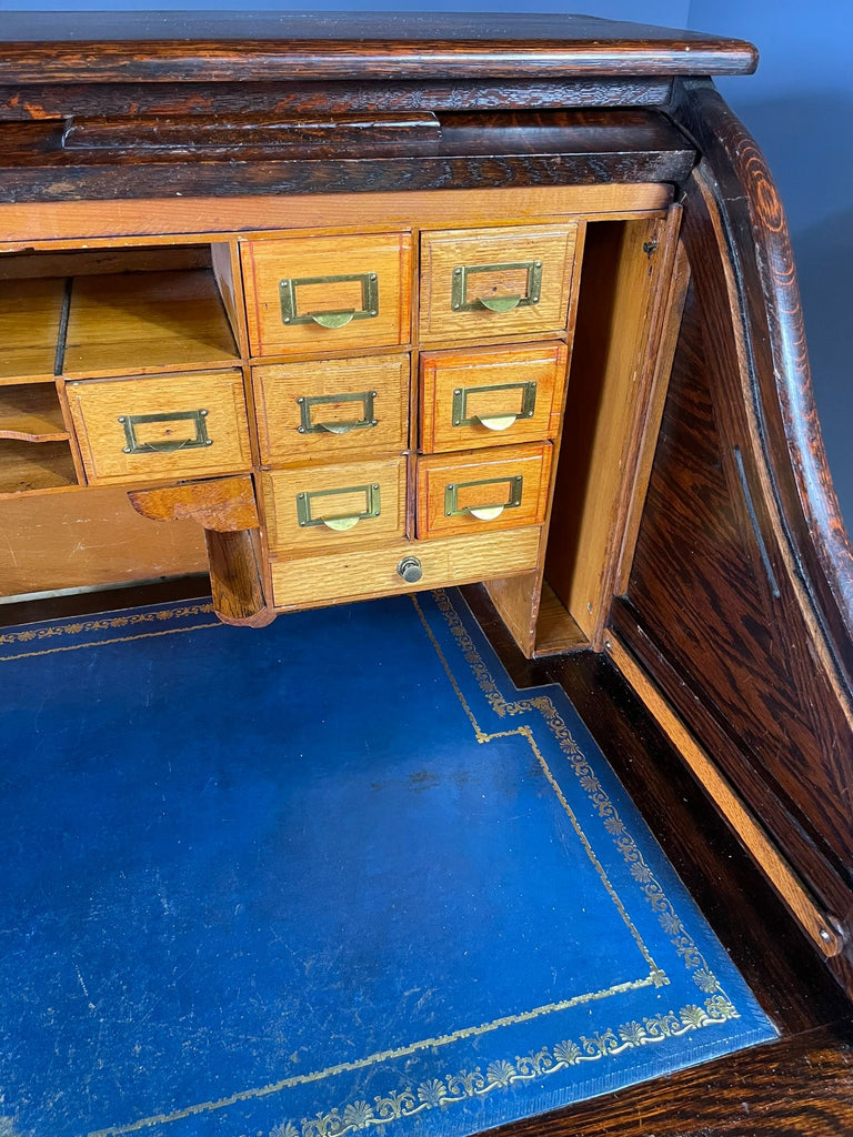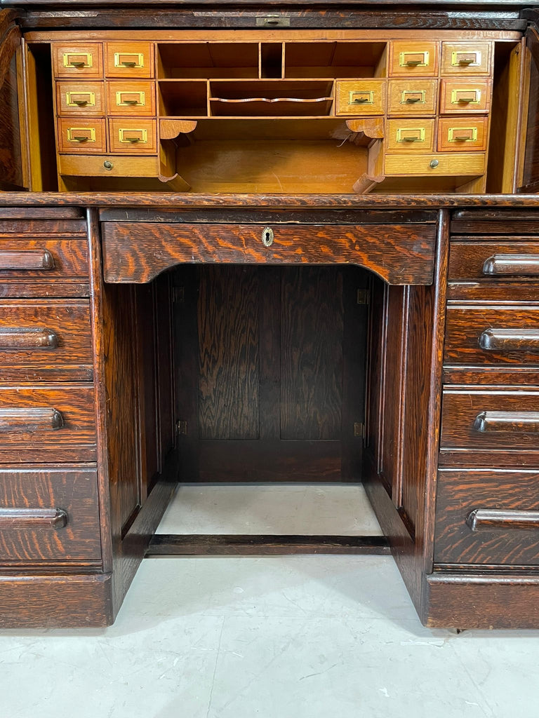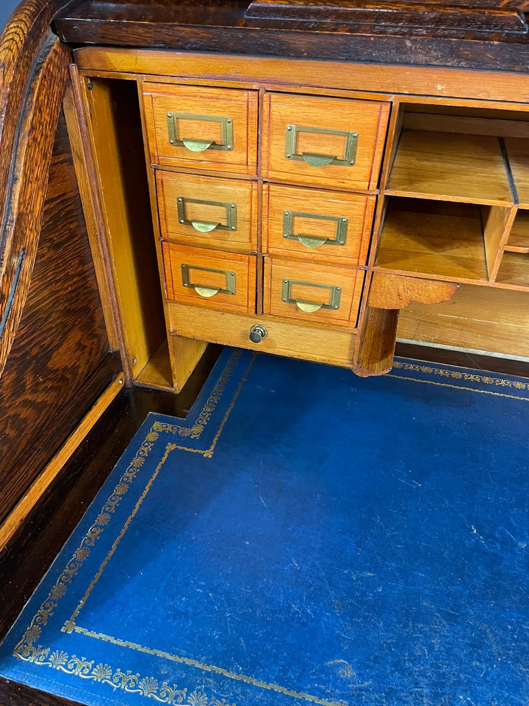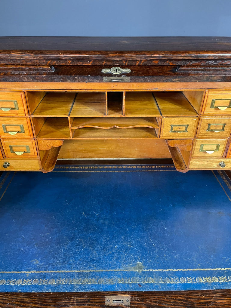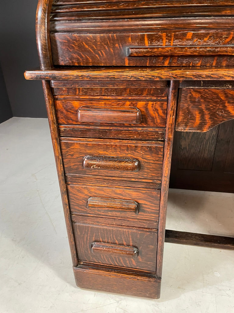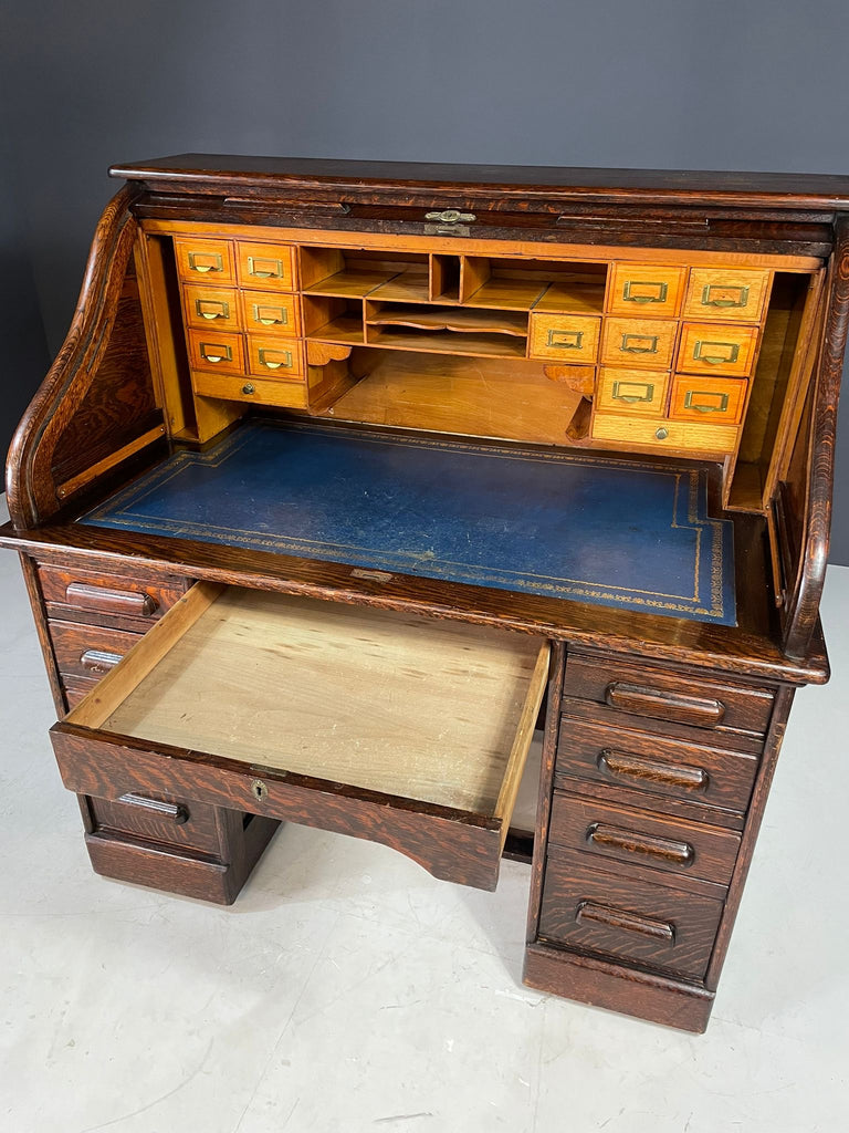American Roll-Top Desk, Solid Oak, Czechoslovakia, 1930s