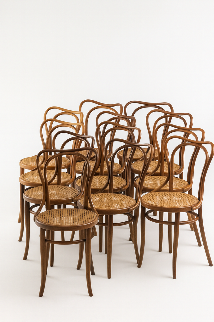 Set of 12 Bentwood Bistro Chairs by J. & J. Kohn, Early 20th Century (Austria)