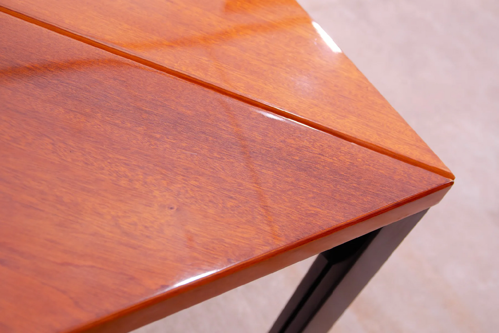 This modular table was made in the 70s in Central Europe. By dividing into two tables, you get two pieces that you can place differently in the space. It is made of wood and is lacquered to a high gloss. In excellent condition, fully professionally restored.