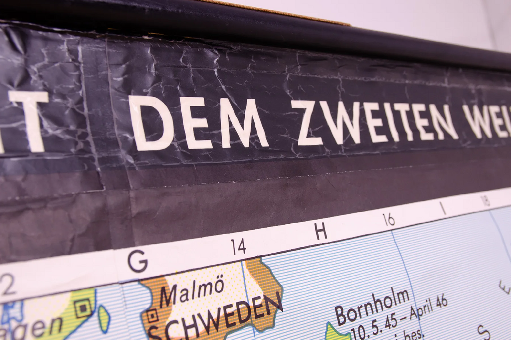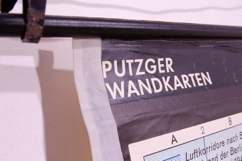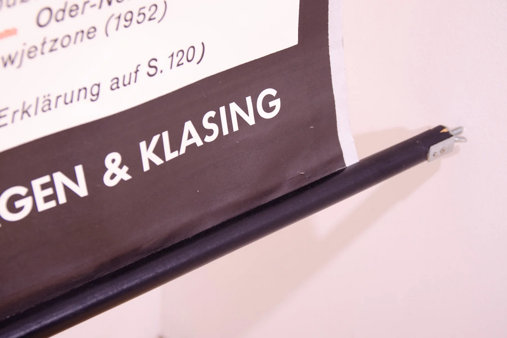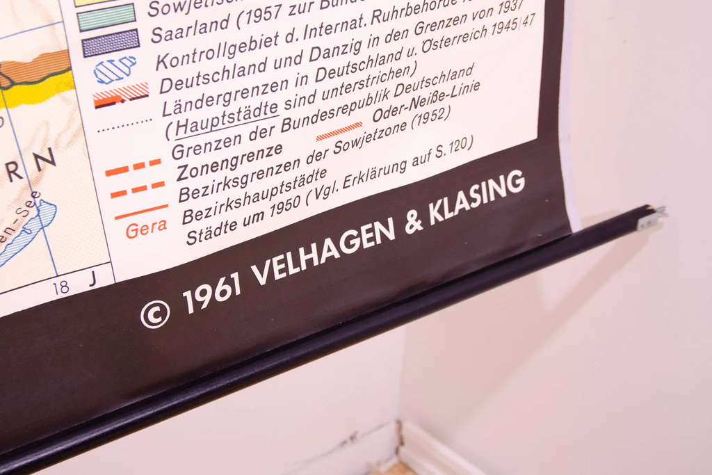 Map has on top and bottom wooden slats. It´s in good Vintage condition.