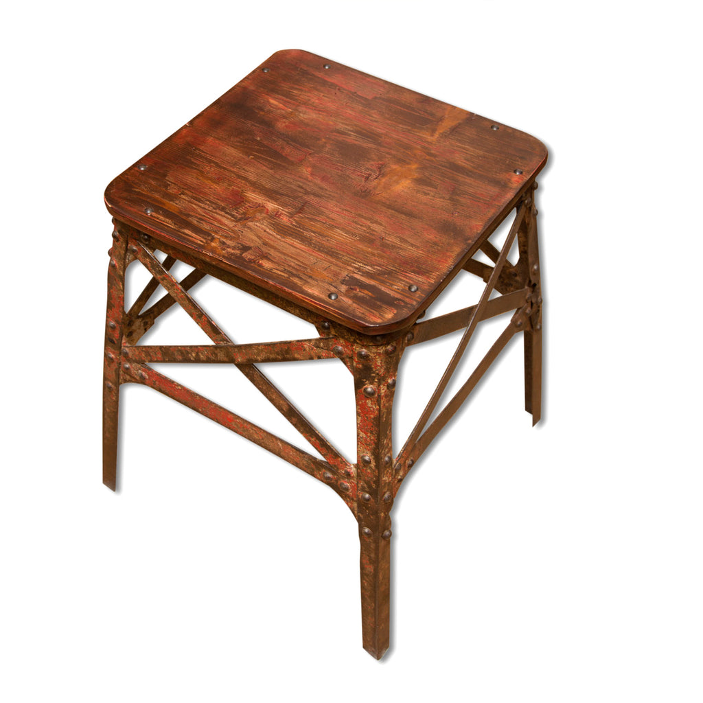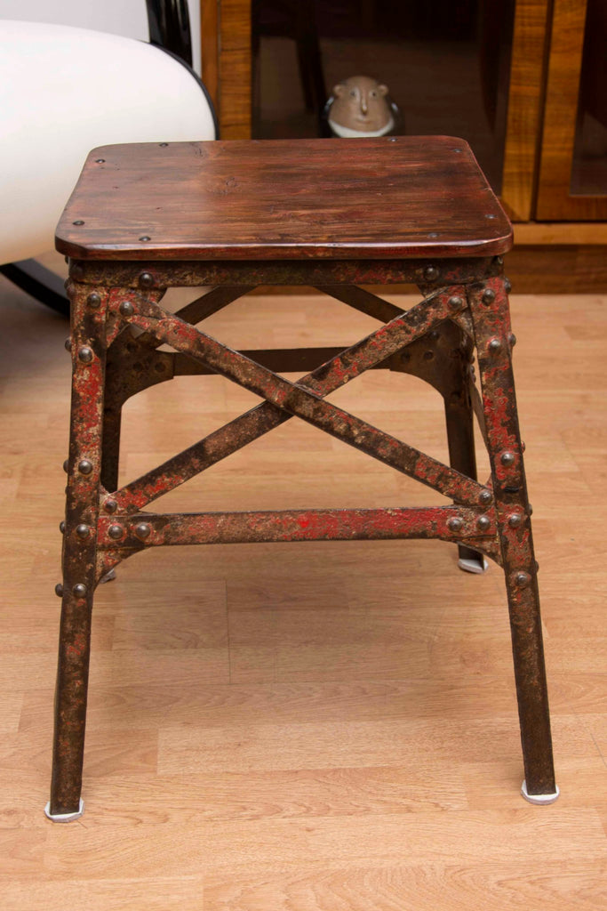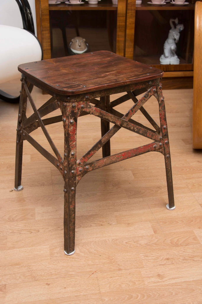 Czechoslovak Vintage industry stool, made in the 1950´s. It features an unconventional design. It was made of beech wood and iron structure. In very good Vintage condition with a nice patina.