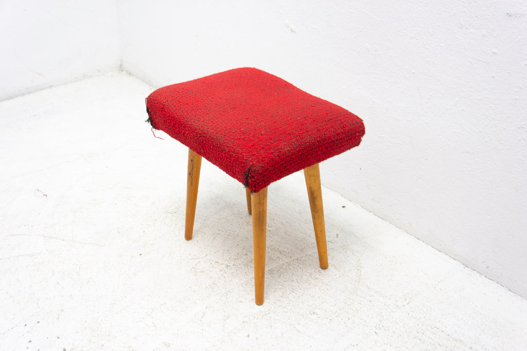 Mid century upholstered stool, footrest,1960, Czechoslovakia