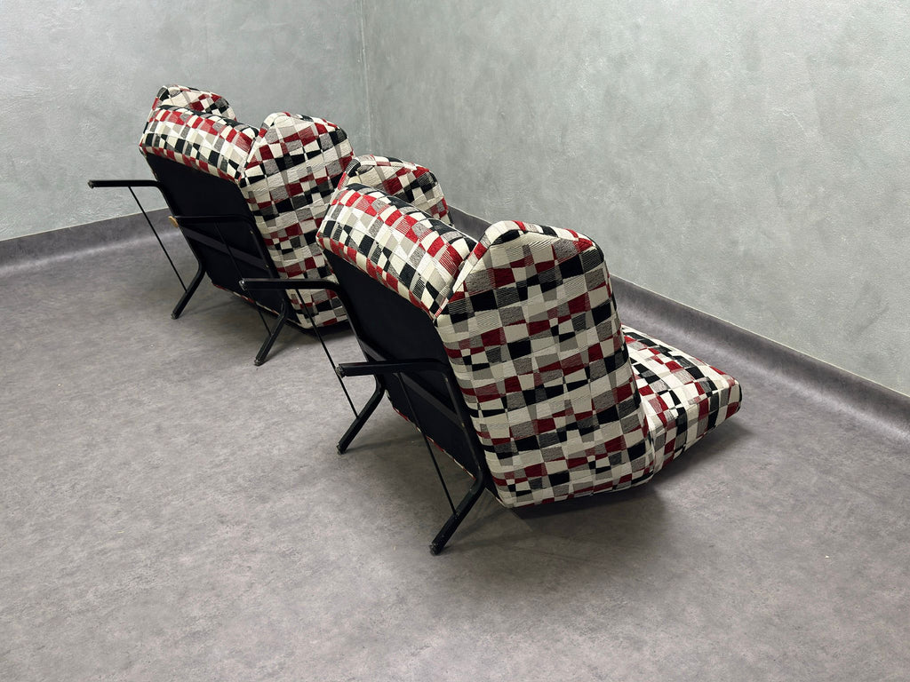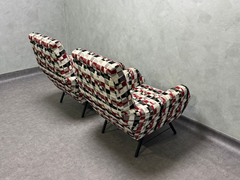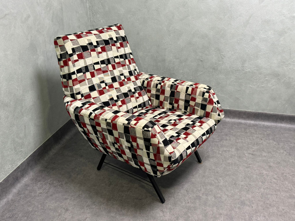 This piece stands out with its strong lines and playful fabric, making it an eye-catching statement in any modern or retro-inspired interior.