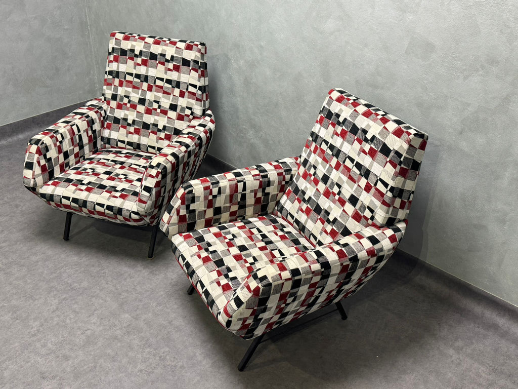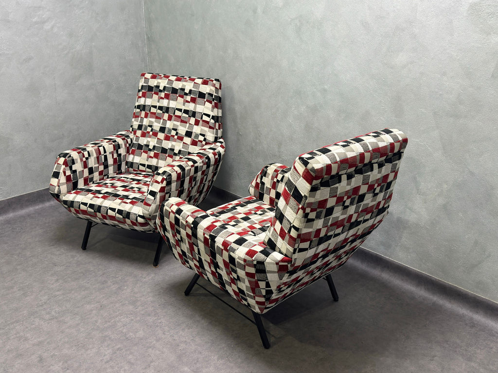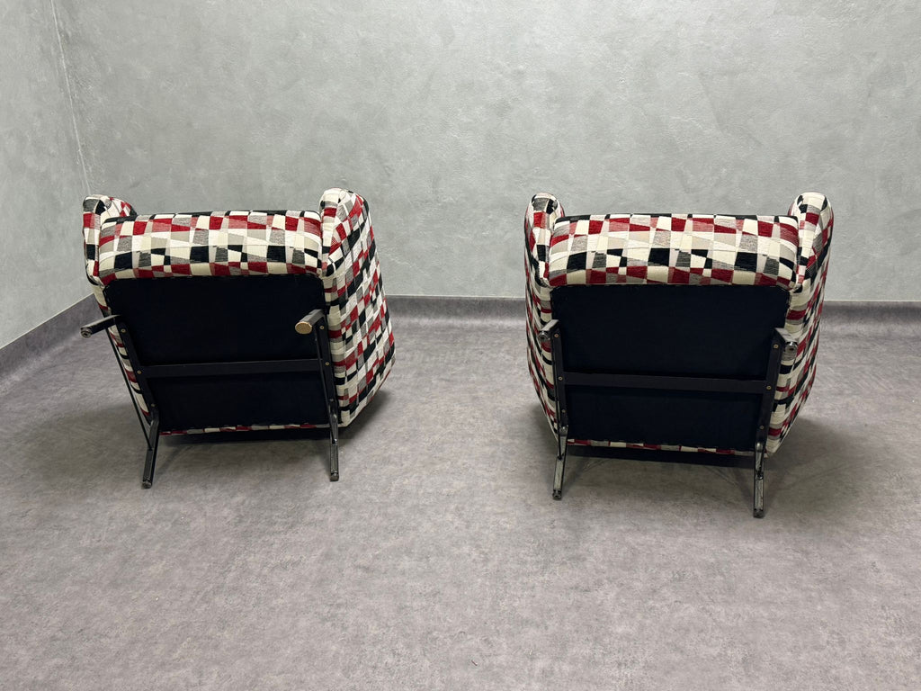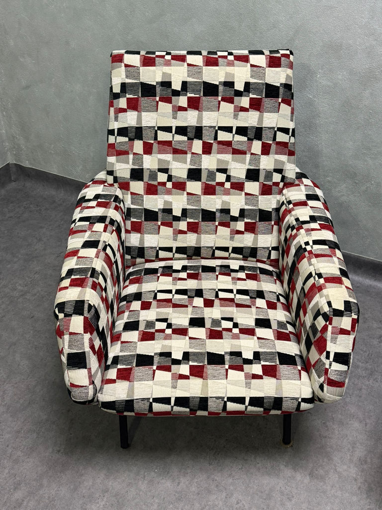 Fully renovated, including new upholstery in a vibrant geometric pattern, offering both comfort and style.