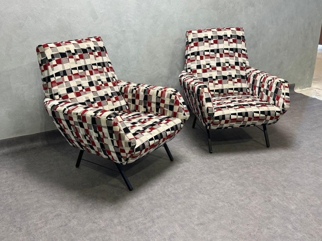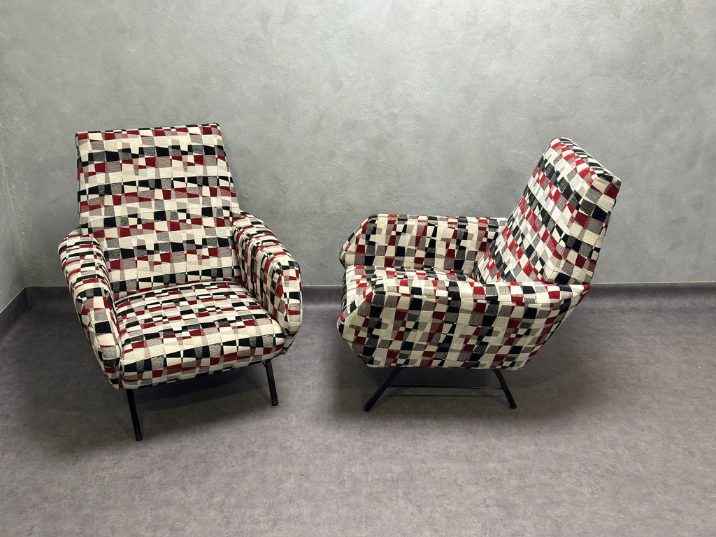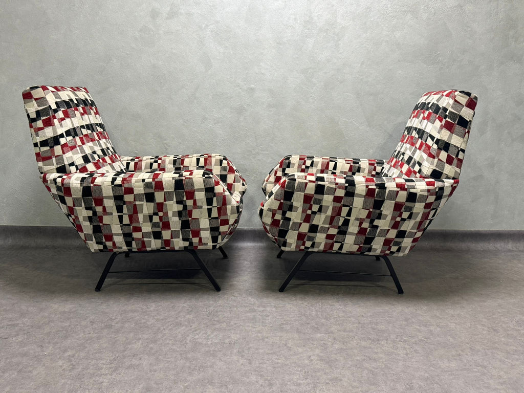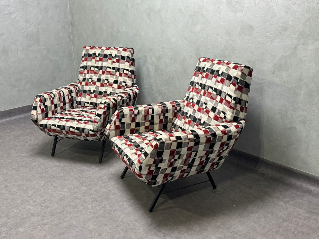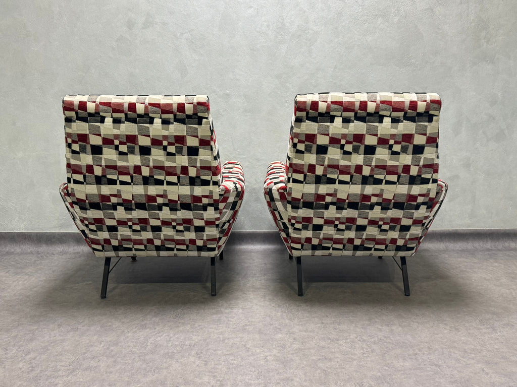 Fully renovated, including new upholstery in a vibrant geometric pattern, offering both comfort and style.