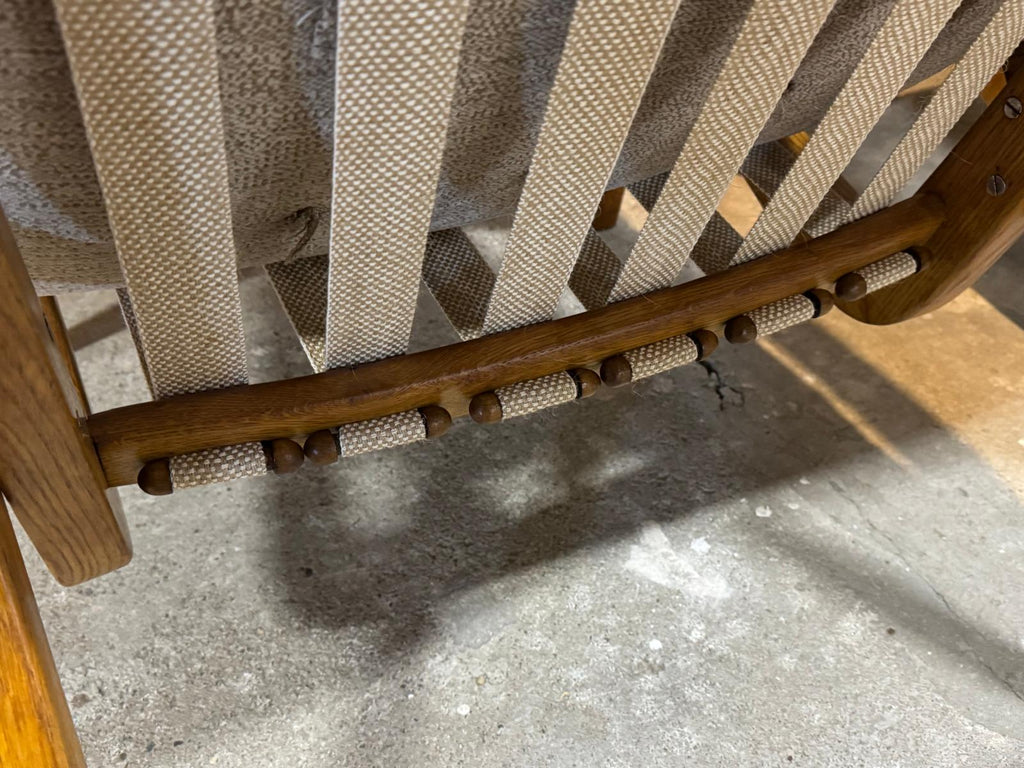 Crafted in former Czechoslovakia, these chairs feature an elegant wooden frame and newly upholstered cushions in a neutral beige fabric.